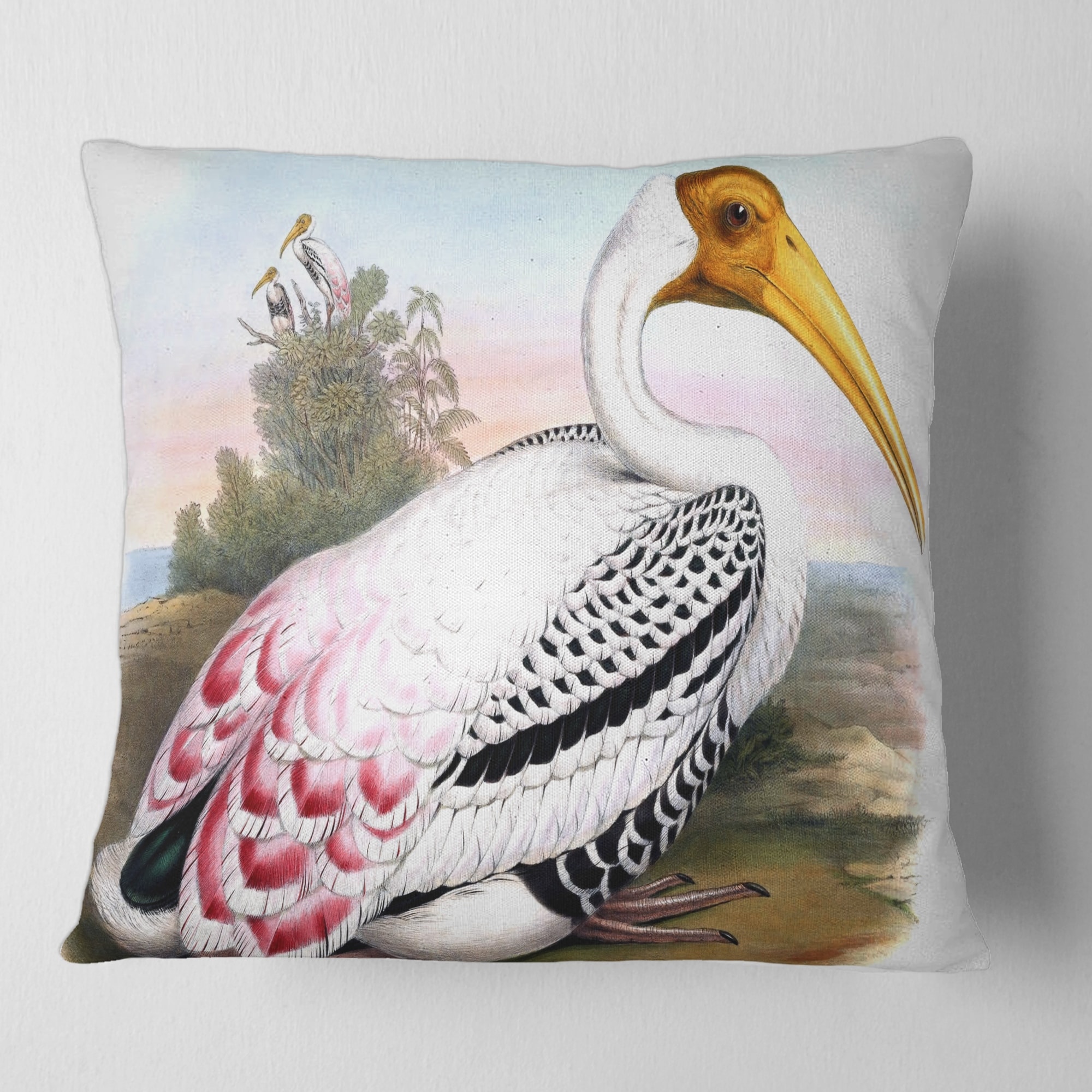 Designart 'Huge White Flamingo in Lake' Animal Throw Pillow