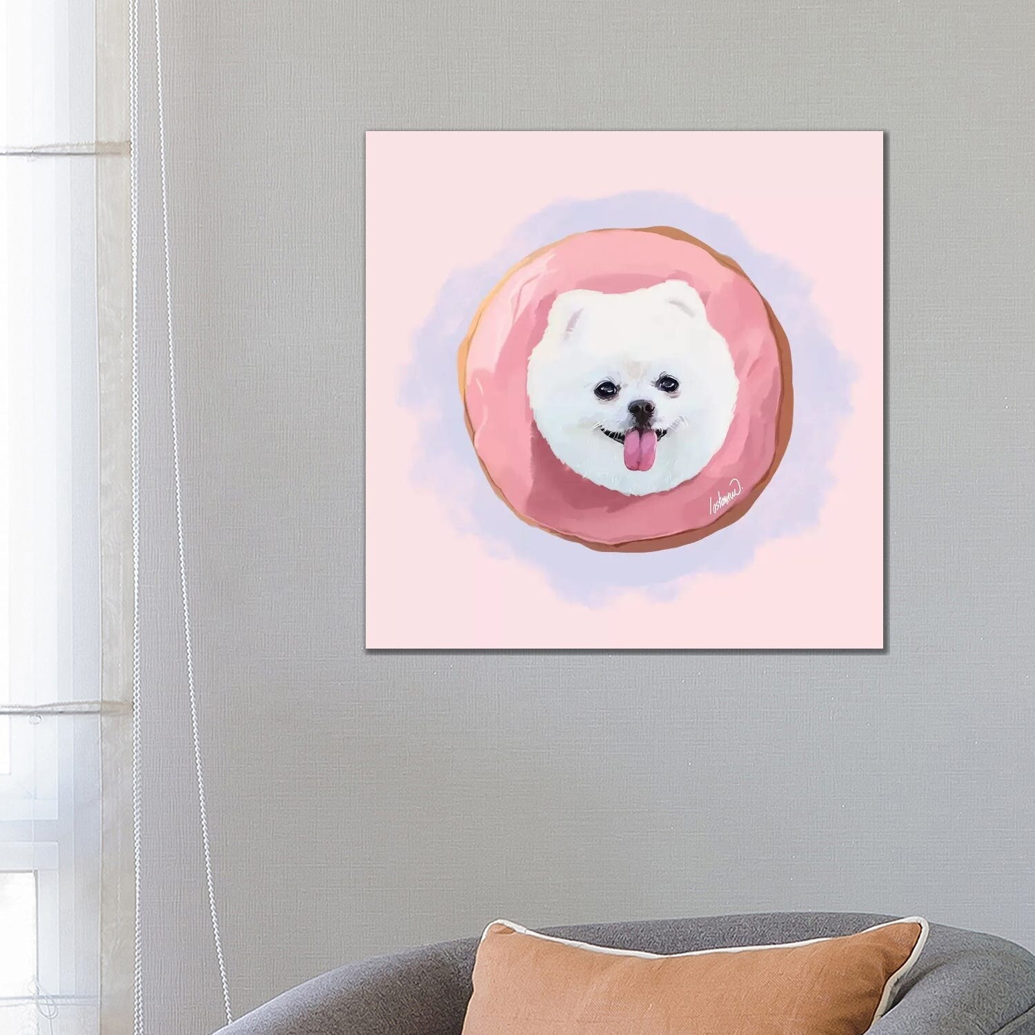 iCanvas "Pomeranian Strawberry Donut" by Lostanaw Canvas Print