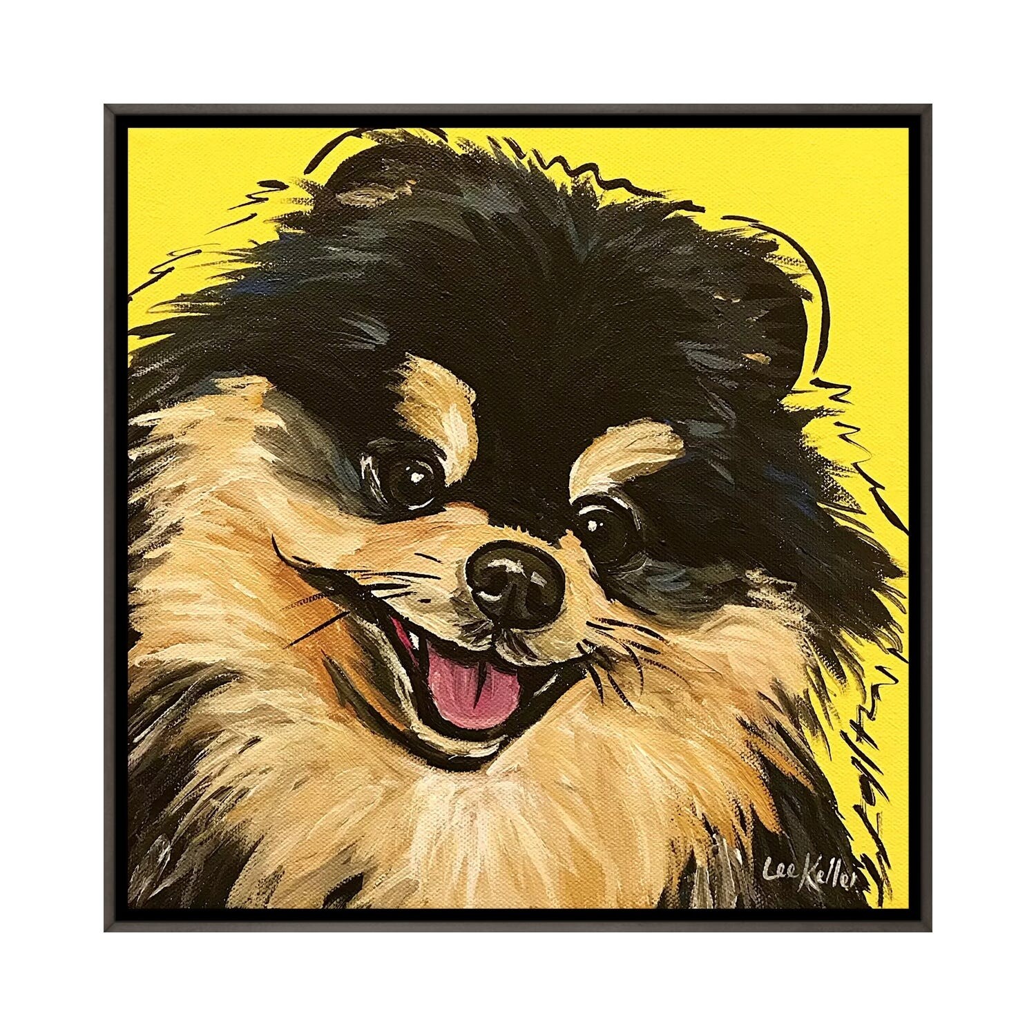 iCanvas "Pomeranian On Yellow" by Hippie Hound Studios Framed