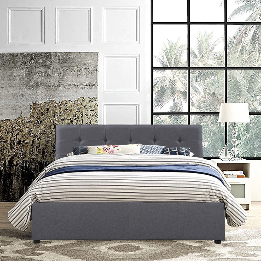 Queen / Full Size Upholstered Platform Bed with Underneath Storage and Linen Headboard
