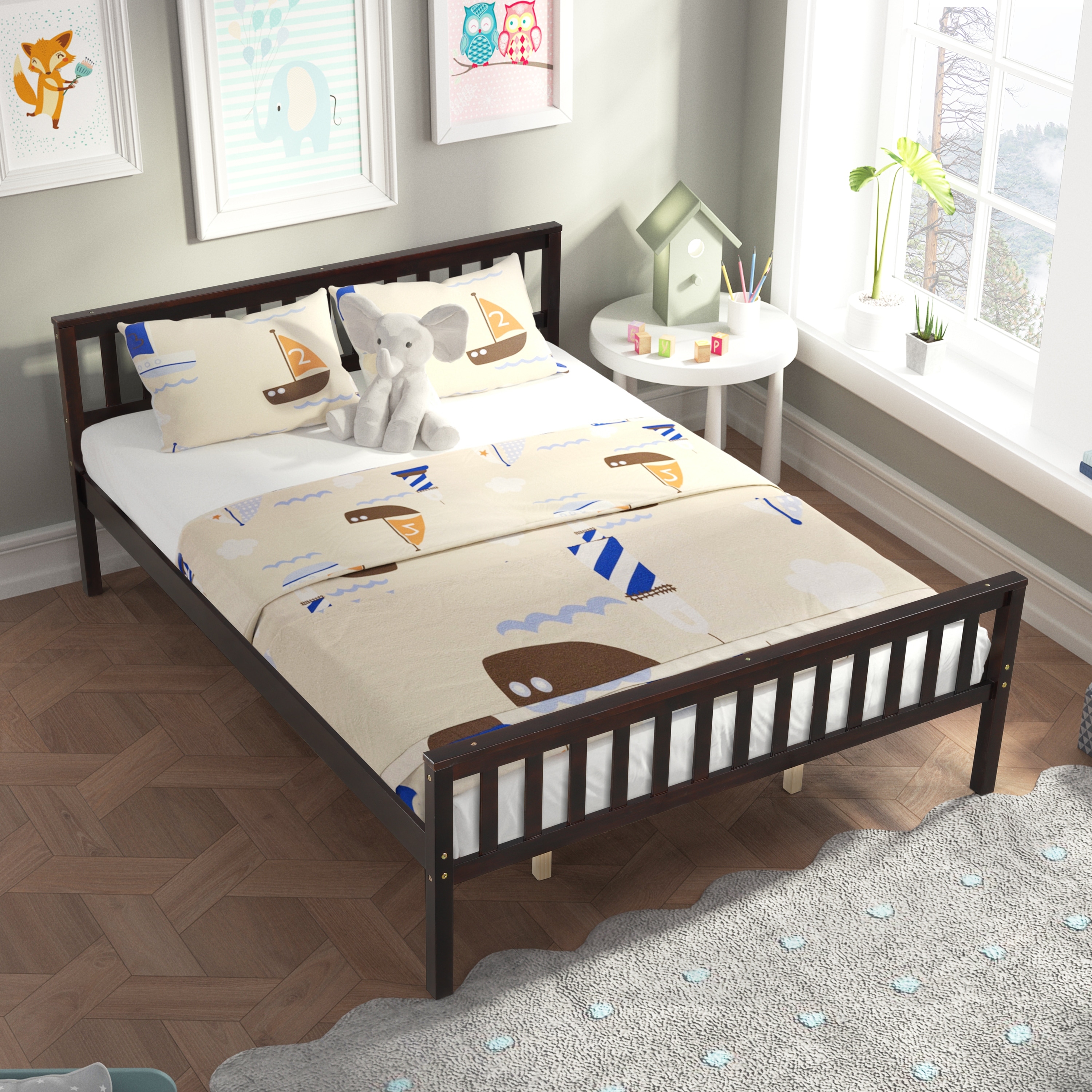 Twin/Full/Queen Wood Frame Platform Bed with Headboard