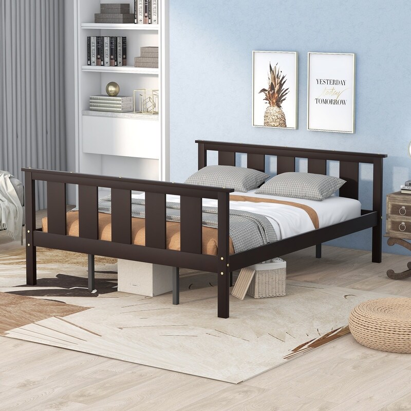 Queen Size Wood Platform Bed with Headboard and Footboard