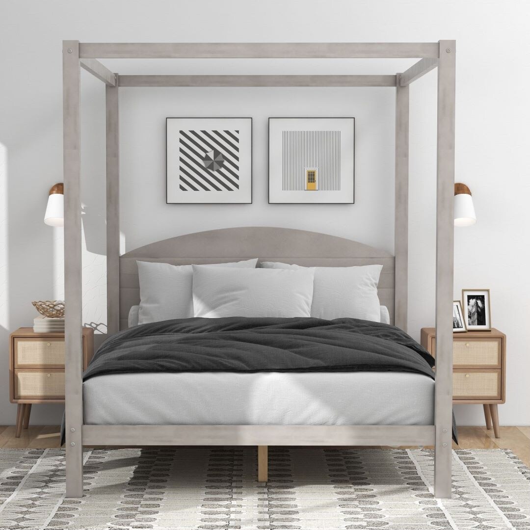 Grey Queen Size Canopy Platform Bed with Headboard and Support Legs