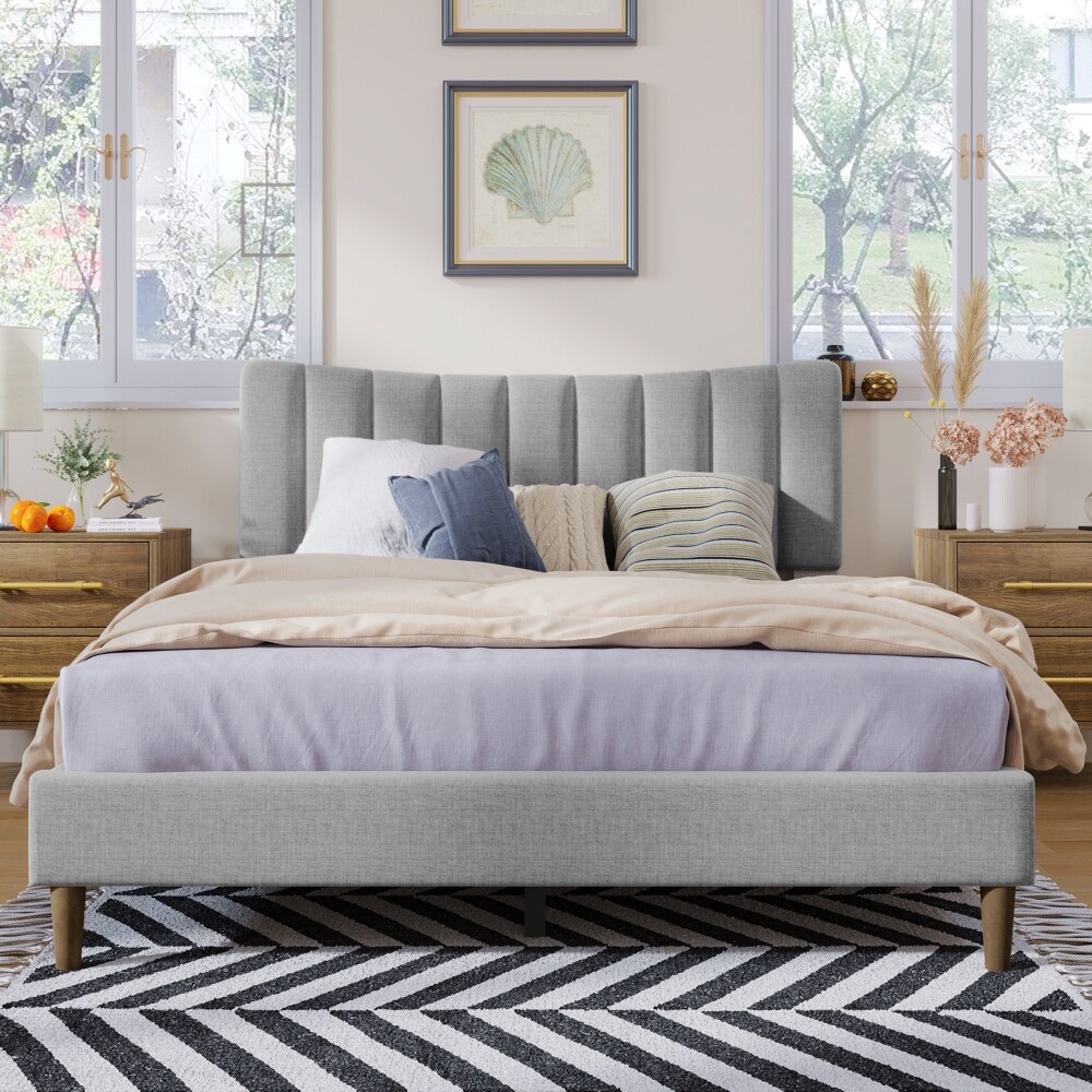 Queen Size Upholstered Platform Bed with Headboard
