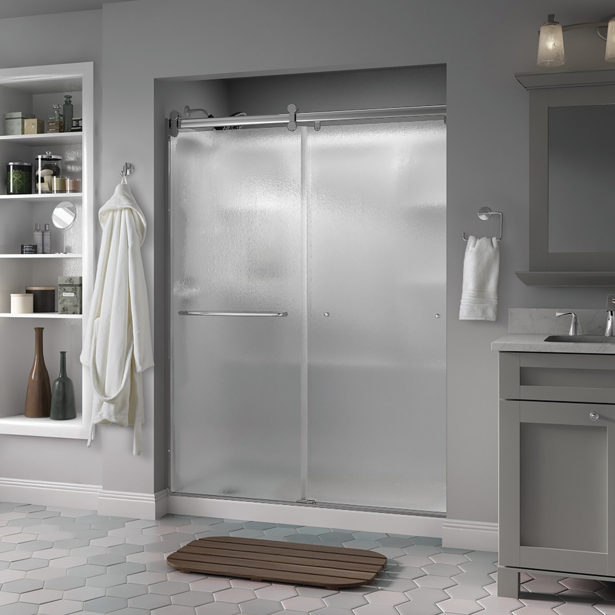 Delta Classic 60" Wide Sliding Frameless Shower Door with Rain Glass