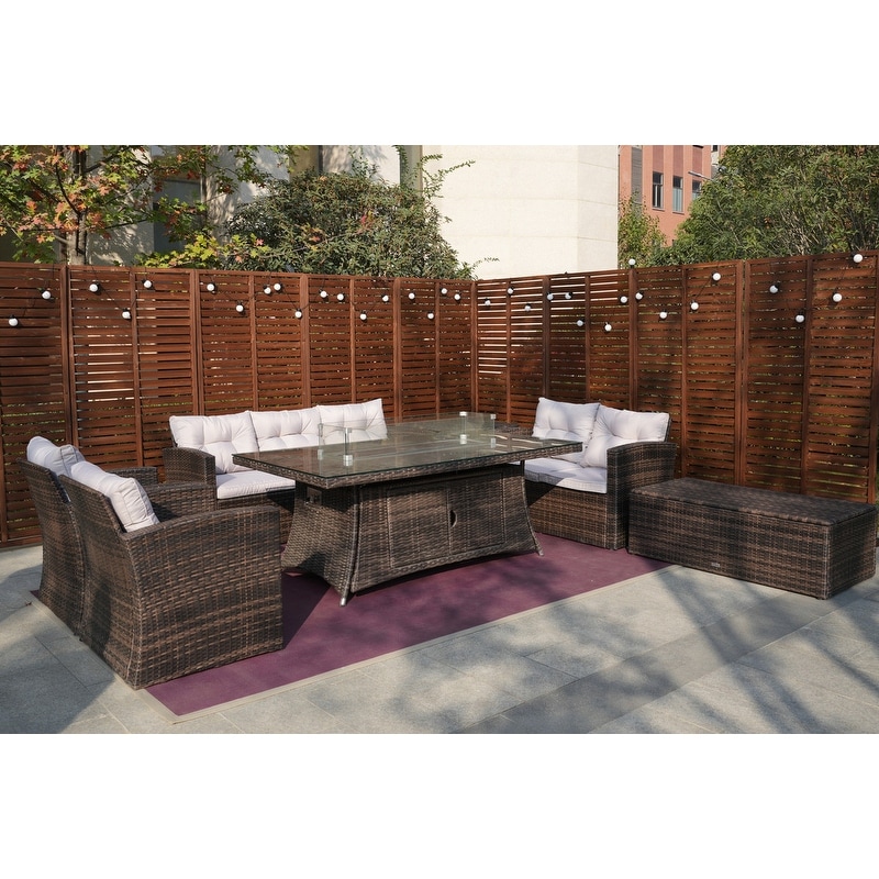 Leavitt 7-Piece Patio Wicker Chat Set with Fire Pit Table and Rain Cover