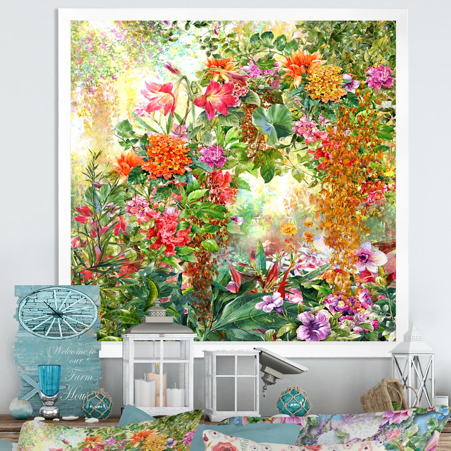 Designart "Modern Red And Green Summer Garden V" Traditional Framed Wall Art