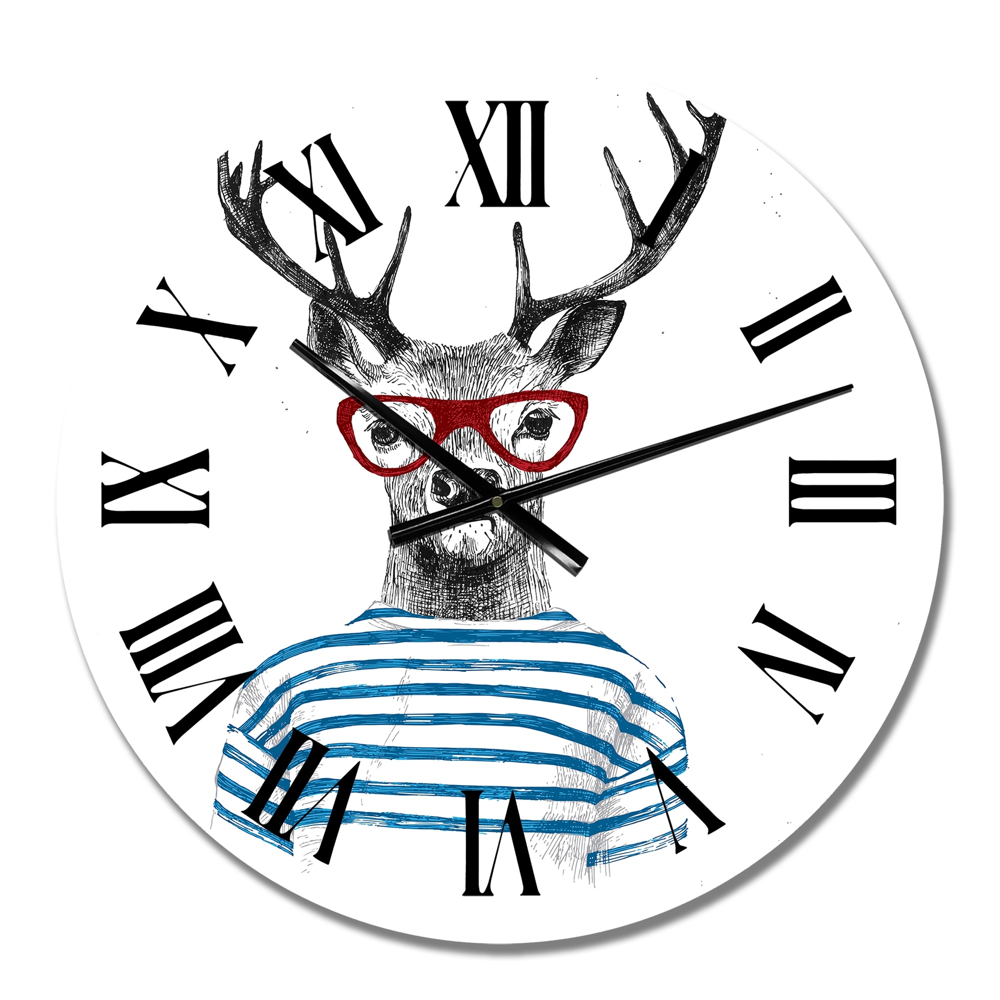 Designart 'Portrait Of a Deer With Red Glasses' Traditional wall clock