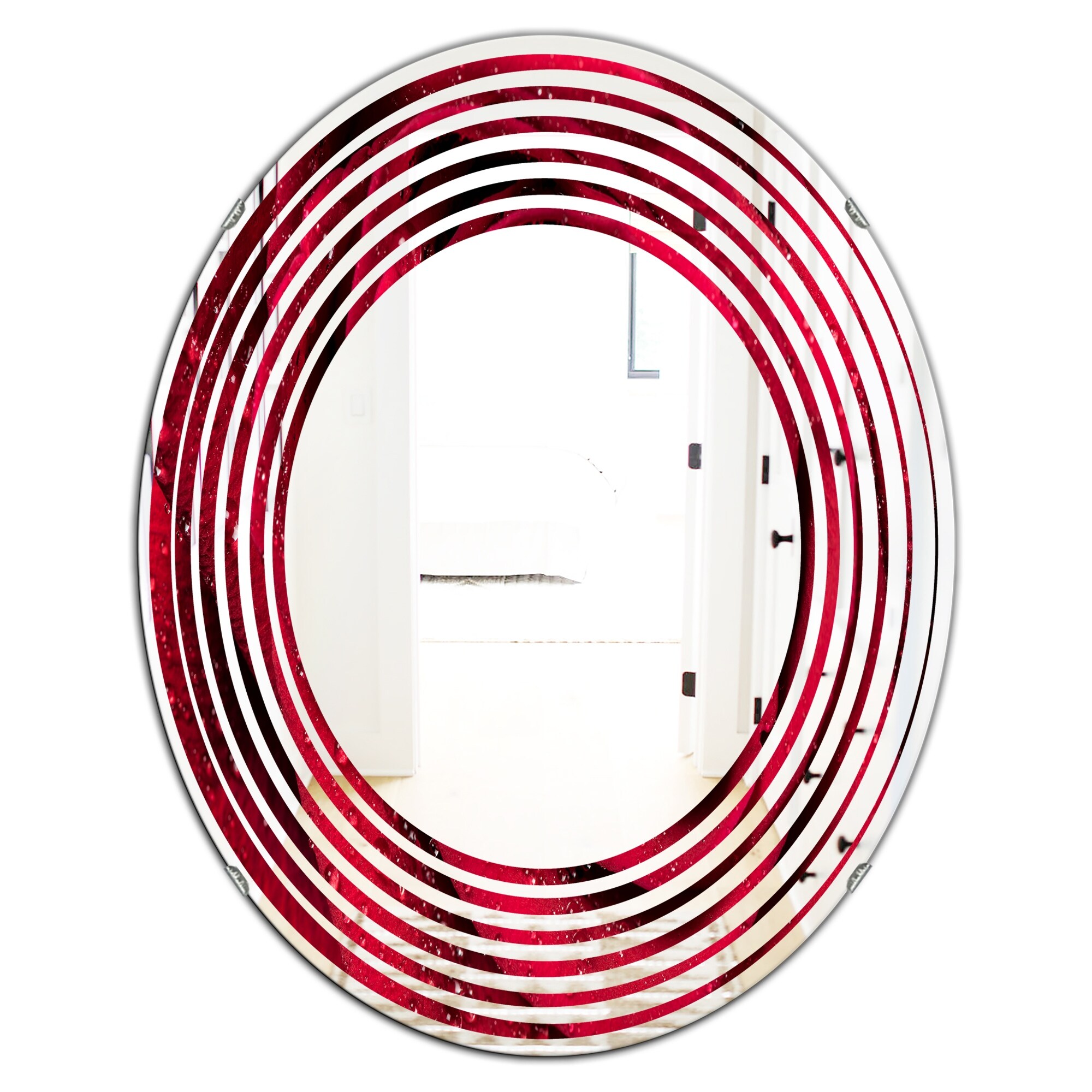 Designart 'Red Rose Petals with Rain Droplets' Printed Modern Round or Oval Wall Mirror - Wave