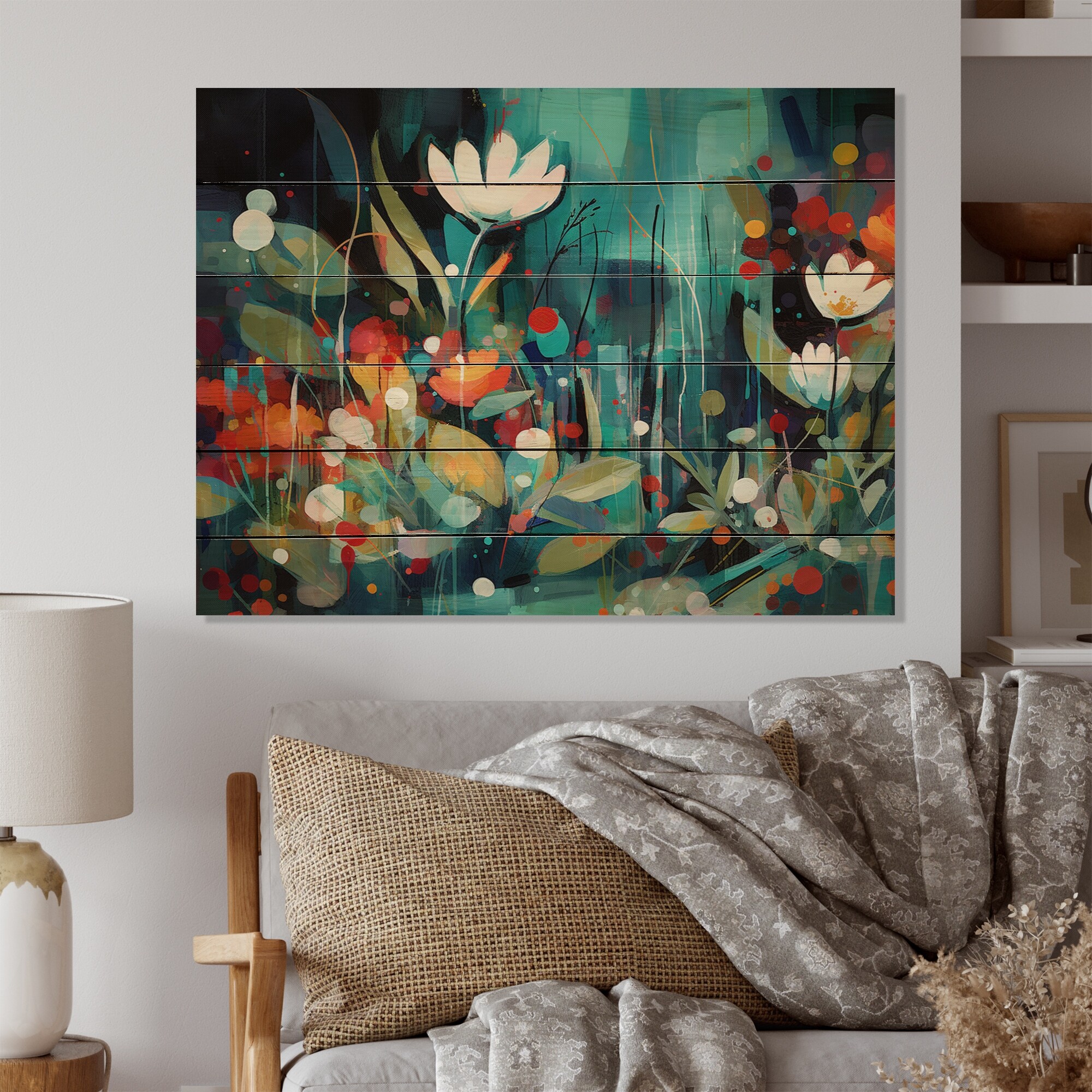 Designart "Red Vibrant Garden Symphony II" Floral Print on Natural Pine Wood