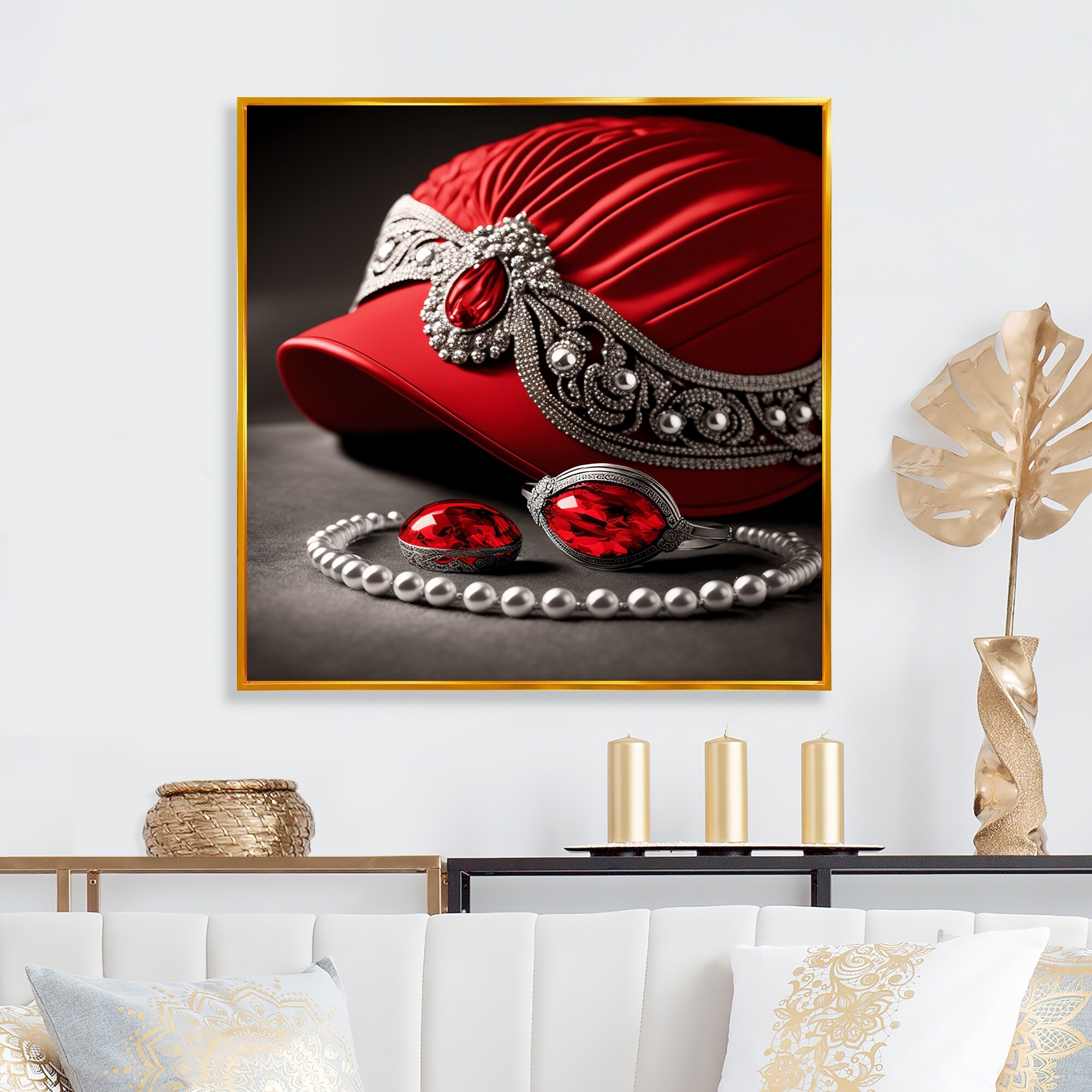 Designart "Vintage Glam Red Hat " Fashion Framed Canvas Wall Art Print