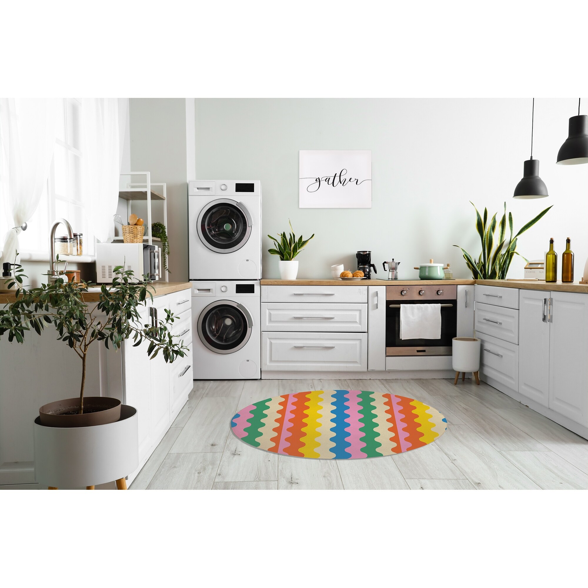 UNDULATING WAVY STRIPES RED Kitchen Mat By Becky Bailey