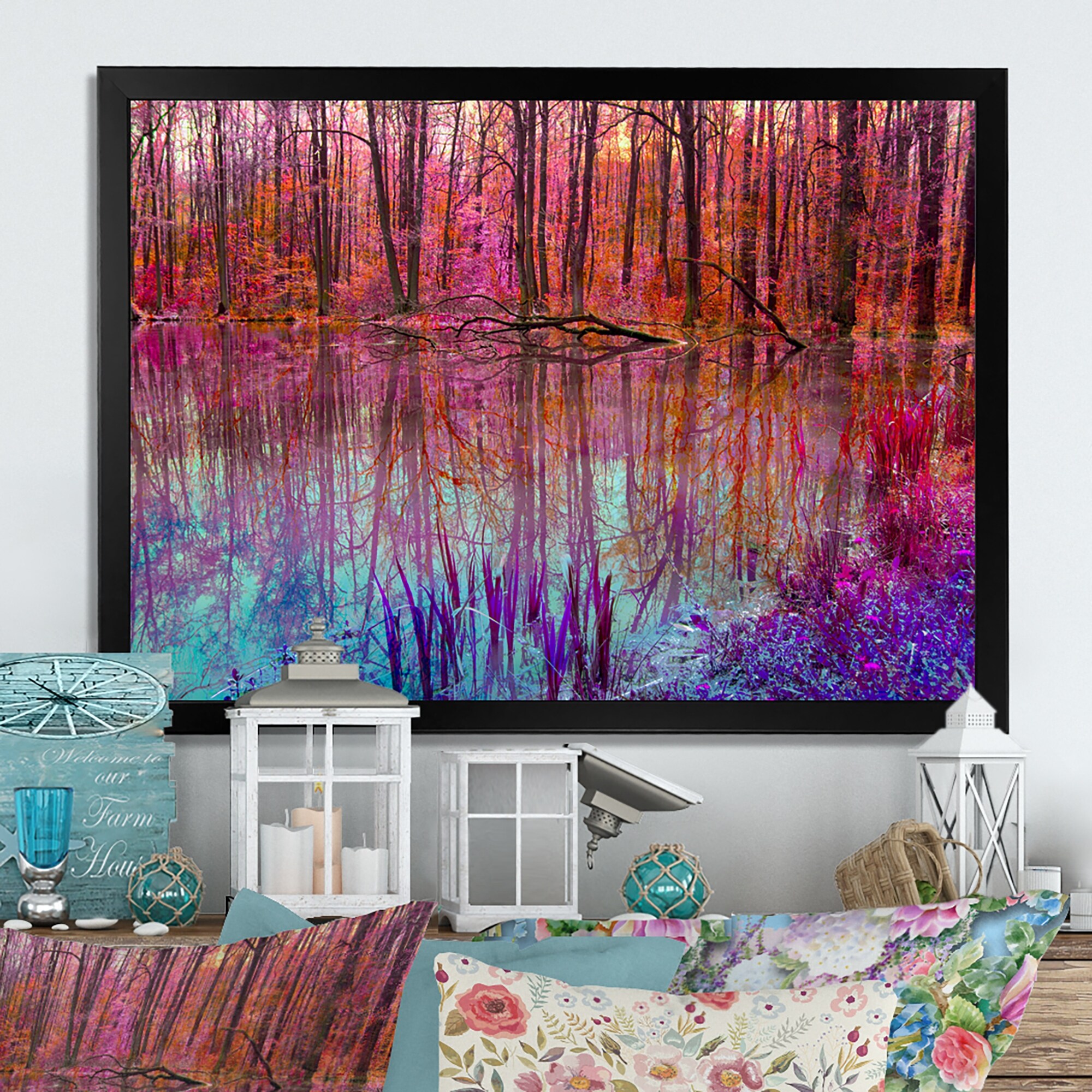 Designart "Red Autumn Artistic Forest By the Lake V" Traditional Framed Wall Decor