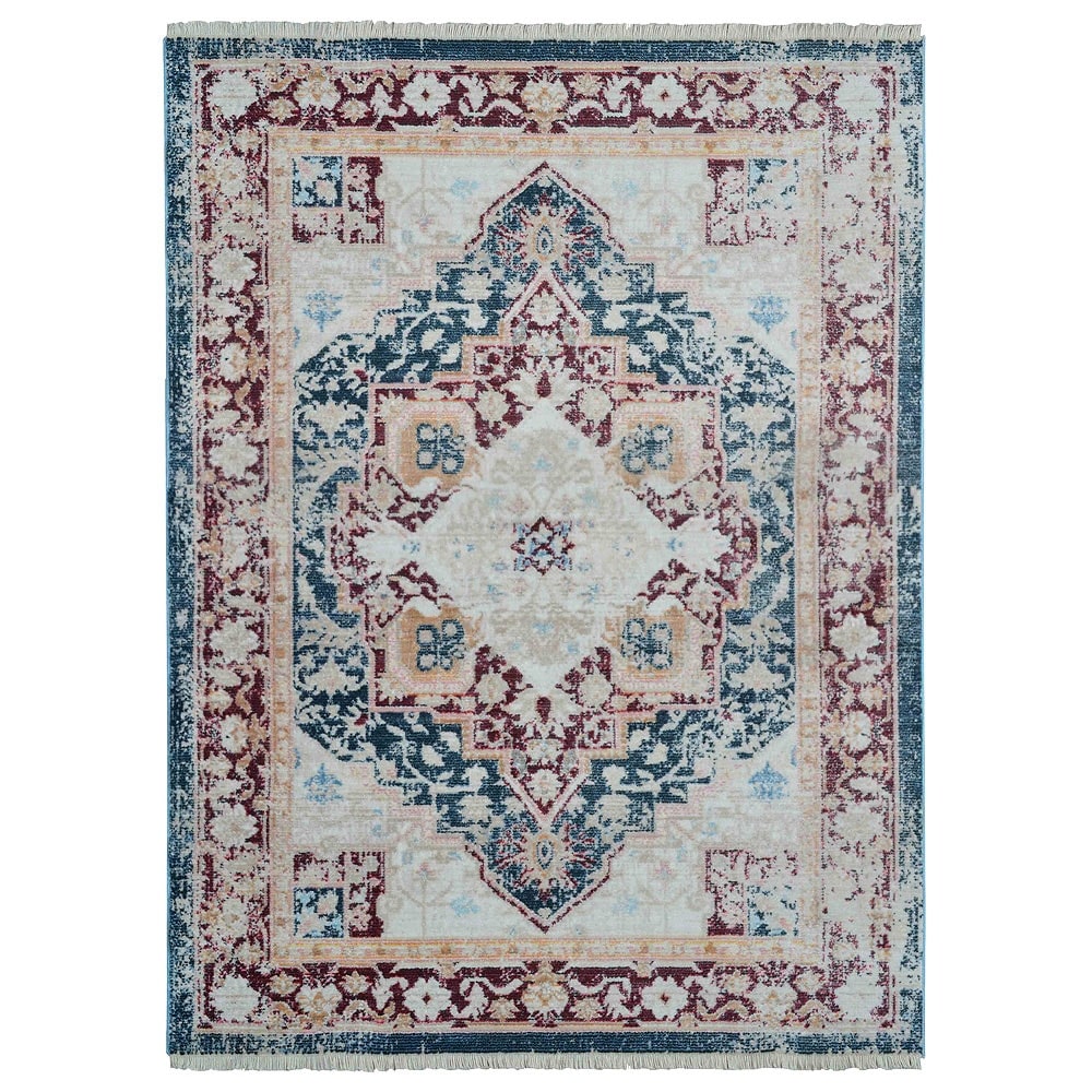 Abani Hampton Contemporary Red and Blue Leaf Indoor Area Rug
