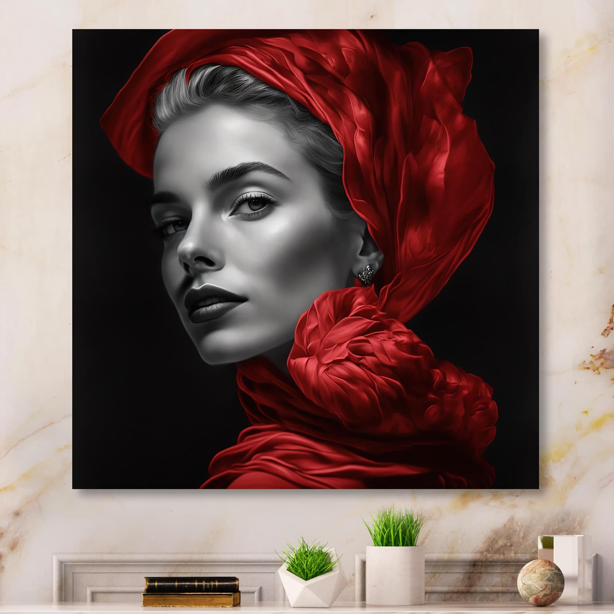 Designart "Vintage Lady in Stylish Red I" Fashion Woman Canvas Wall Art