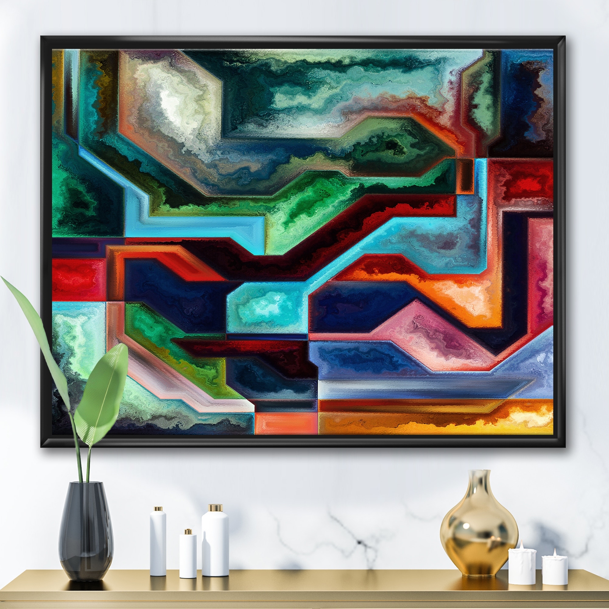 Designart "Abstract Shapes of Blue Black And Red" Modern Framed Canvas Wall Art Print