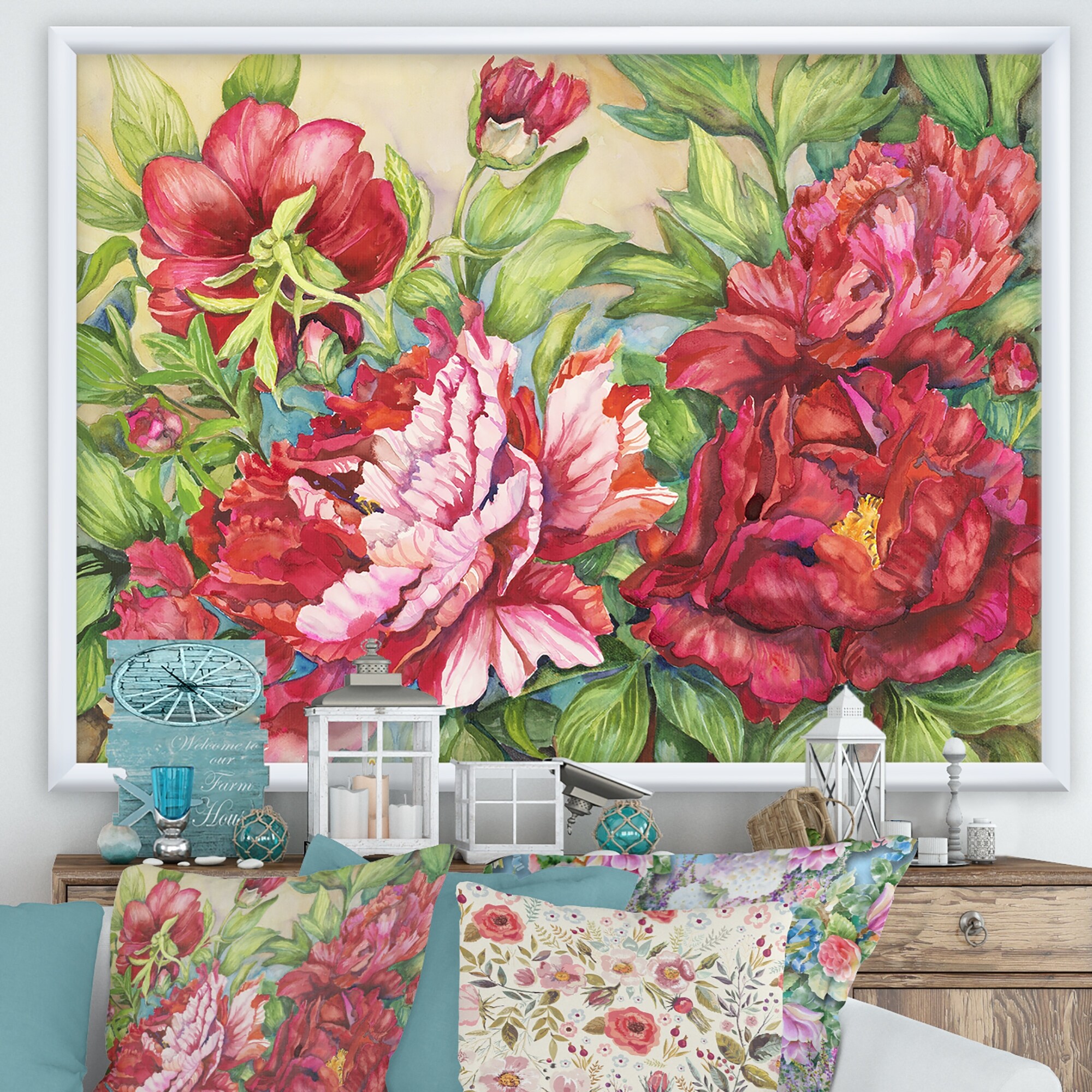 Designart "Peonies In Shades of Red" Traditional Framed Art Print