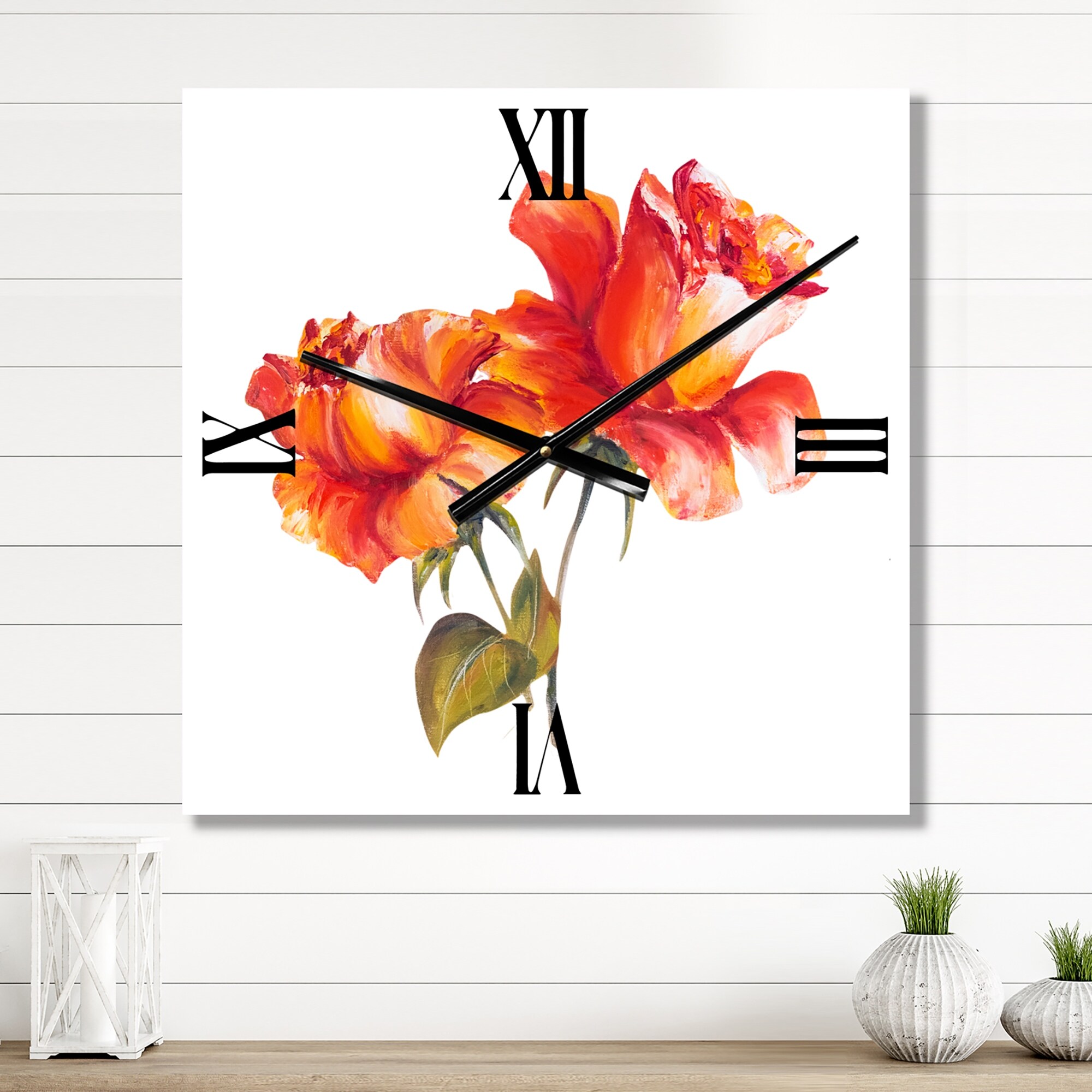 Designart 'Two Blossoming Red Roses' Traditional wall clock