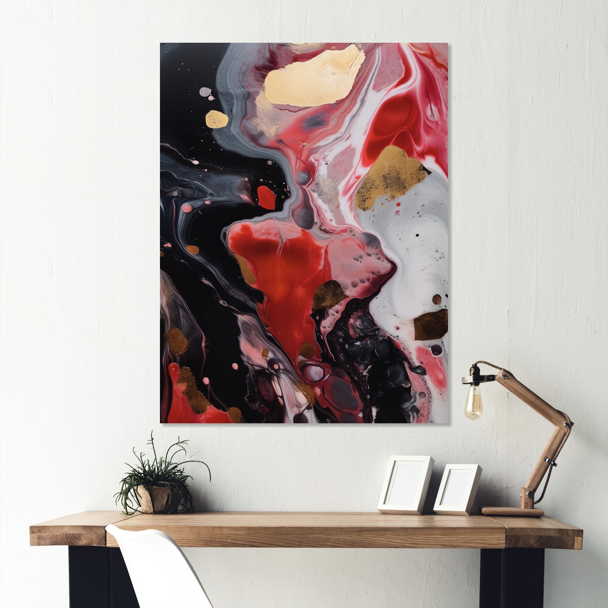 Designart "Red And Black Luxury Abstract Fluid Art IV" Modern Framed Canvas Wall Art Print