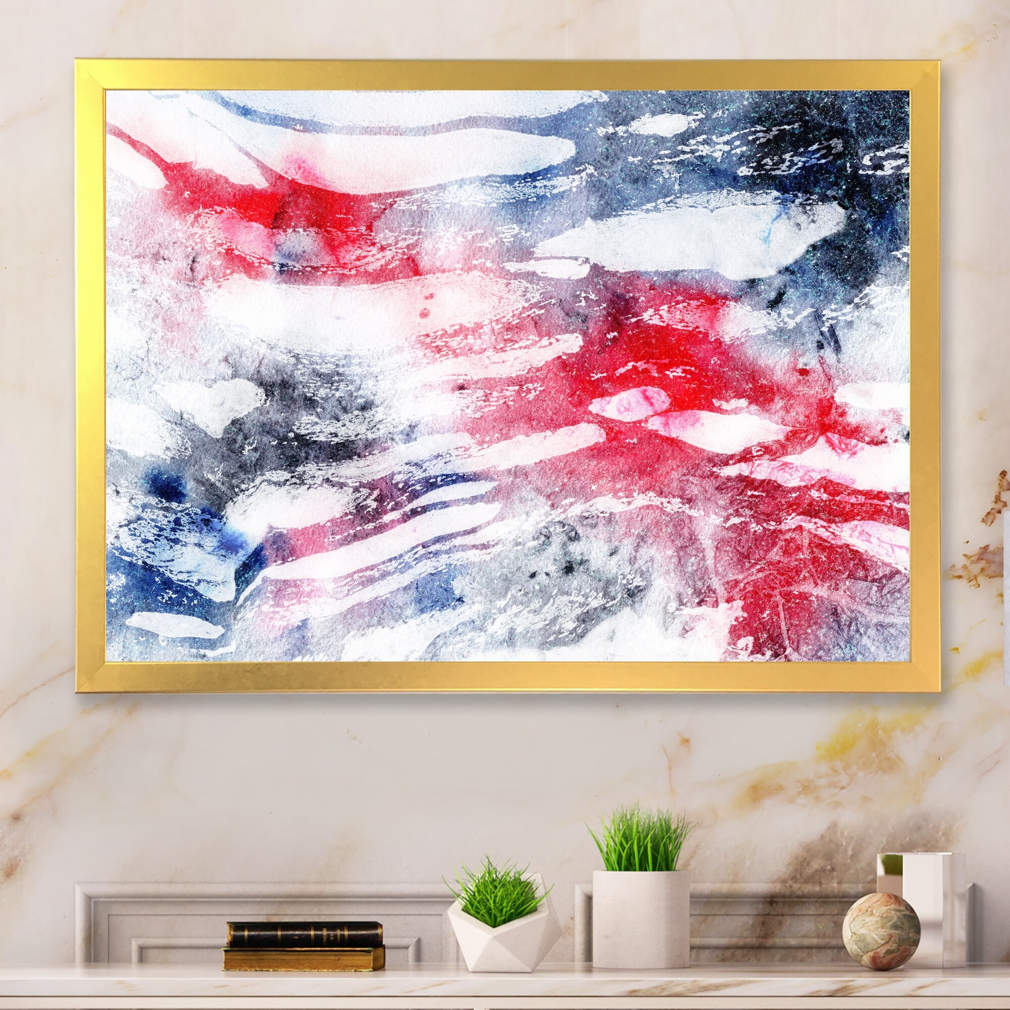 Designart "Marbling Red And Grey Liquid Art" Shabby Chic Framed Wall Art