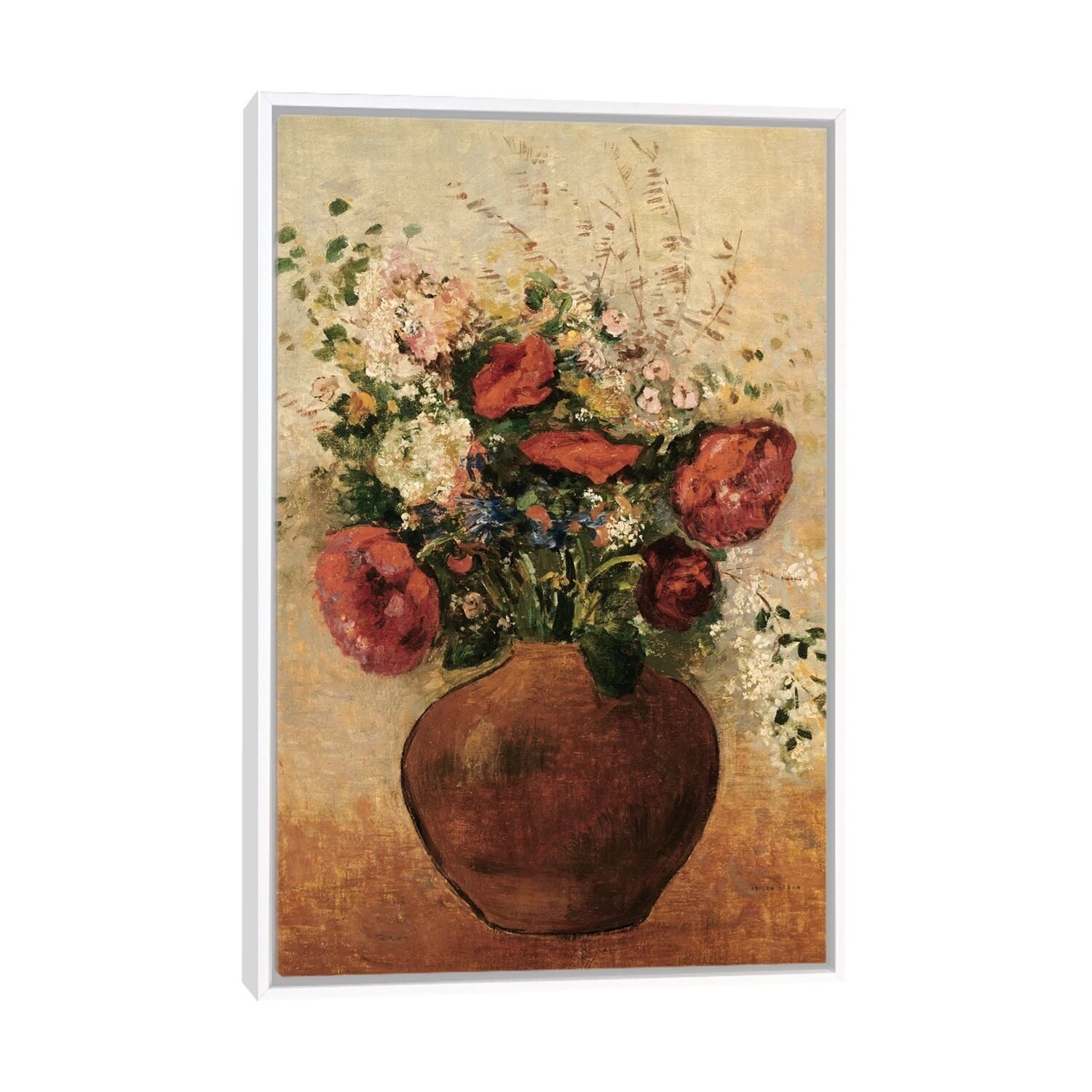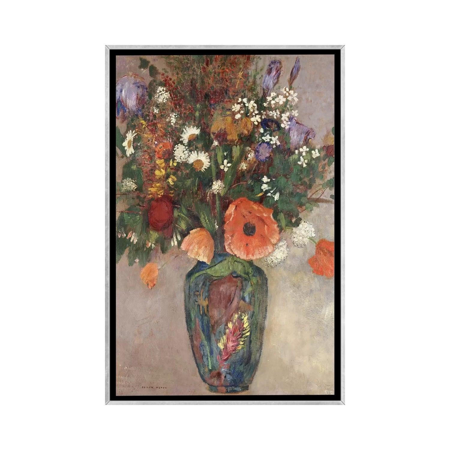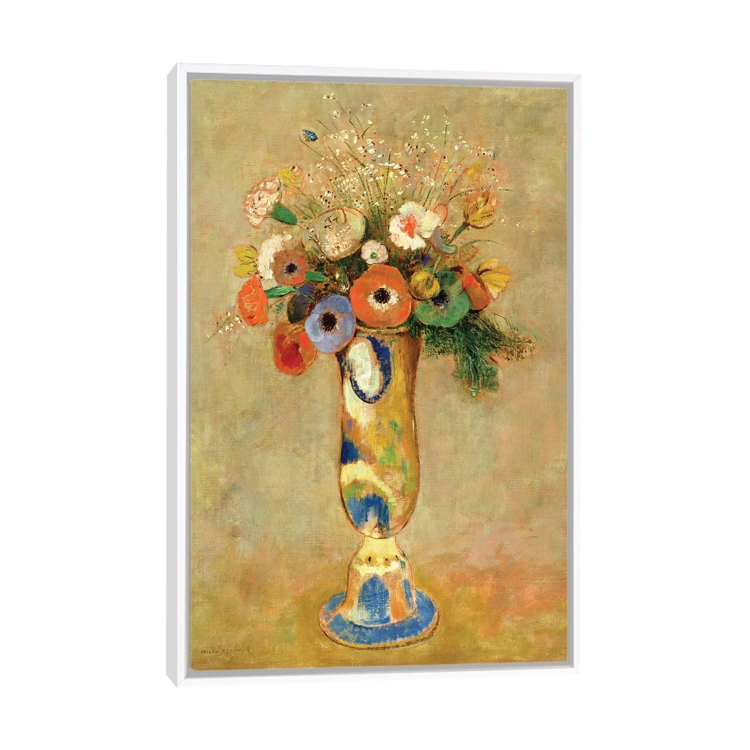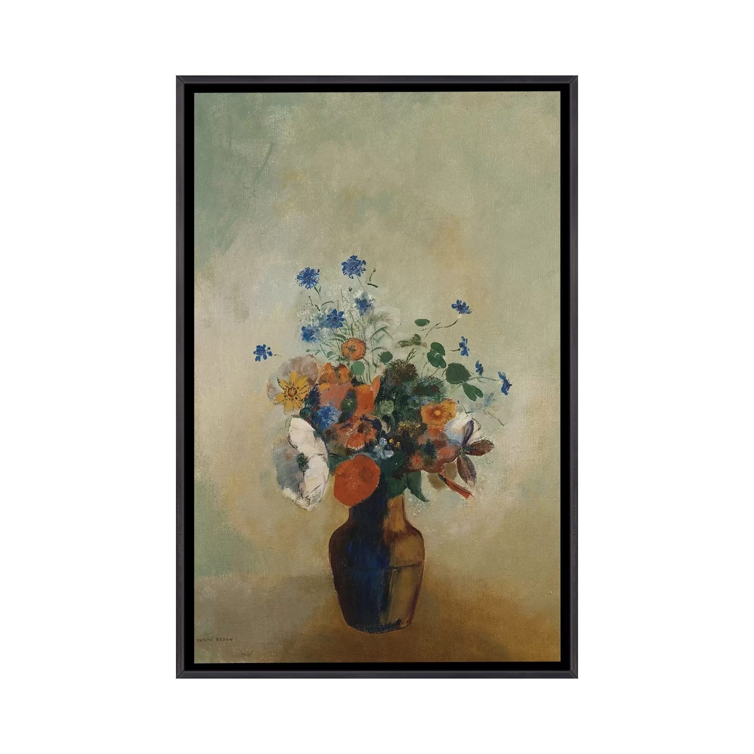 iCanvas "Flowers in a Painted Vase" by Odilon Redon Framed