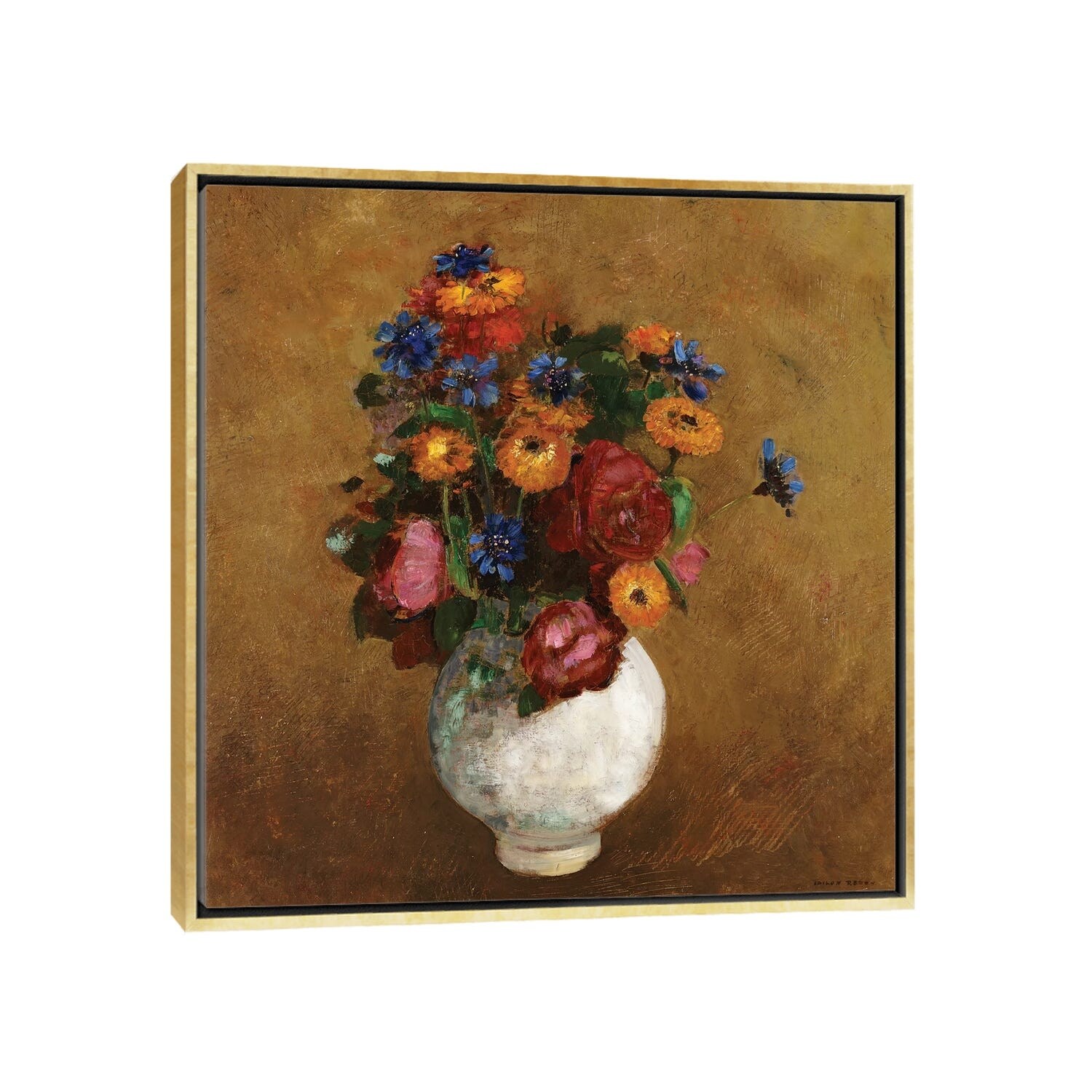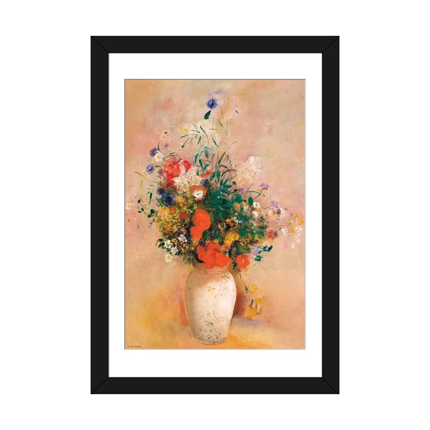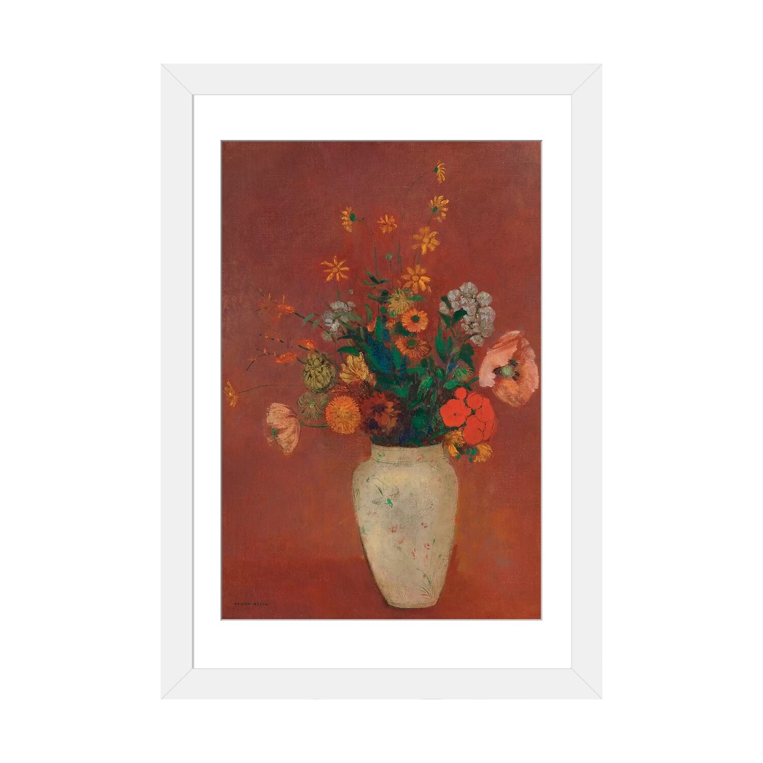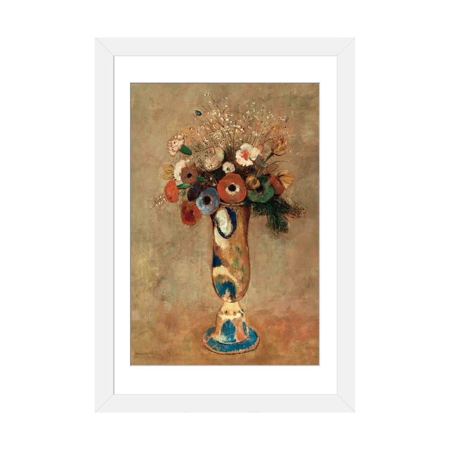 iCanvas "Flowers in a Painted Vase" by Odilon Redon Framed