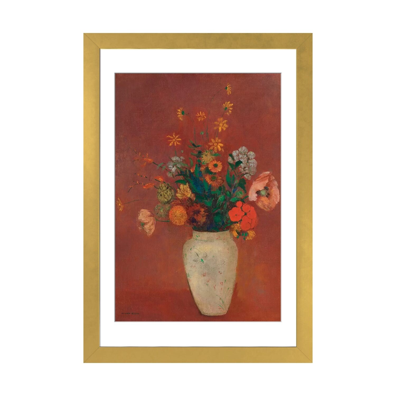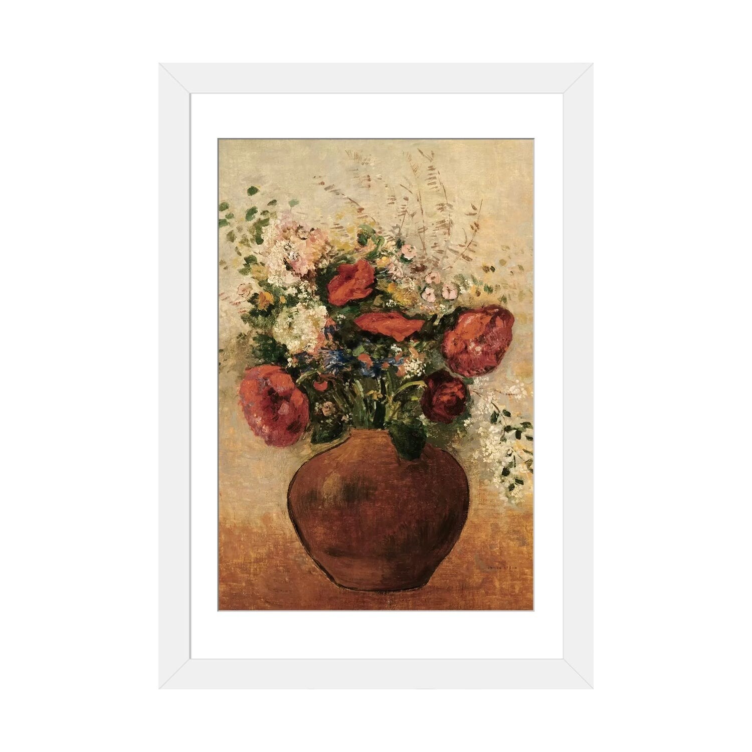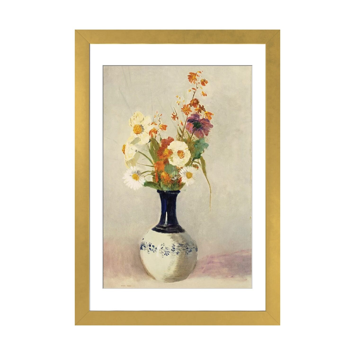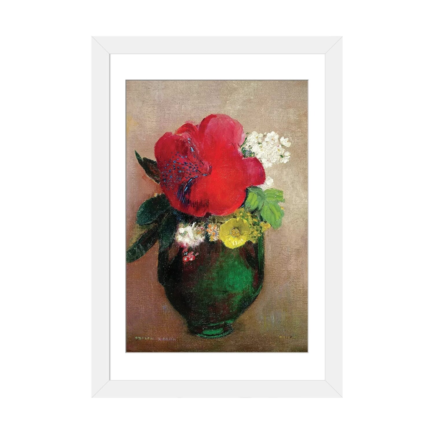 iCanvas "Flowers in a Painted Vase" by Odilon Redon Framed