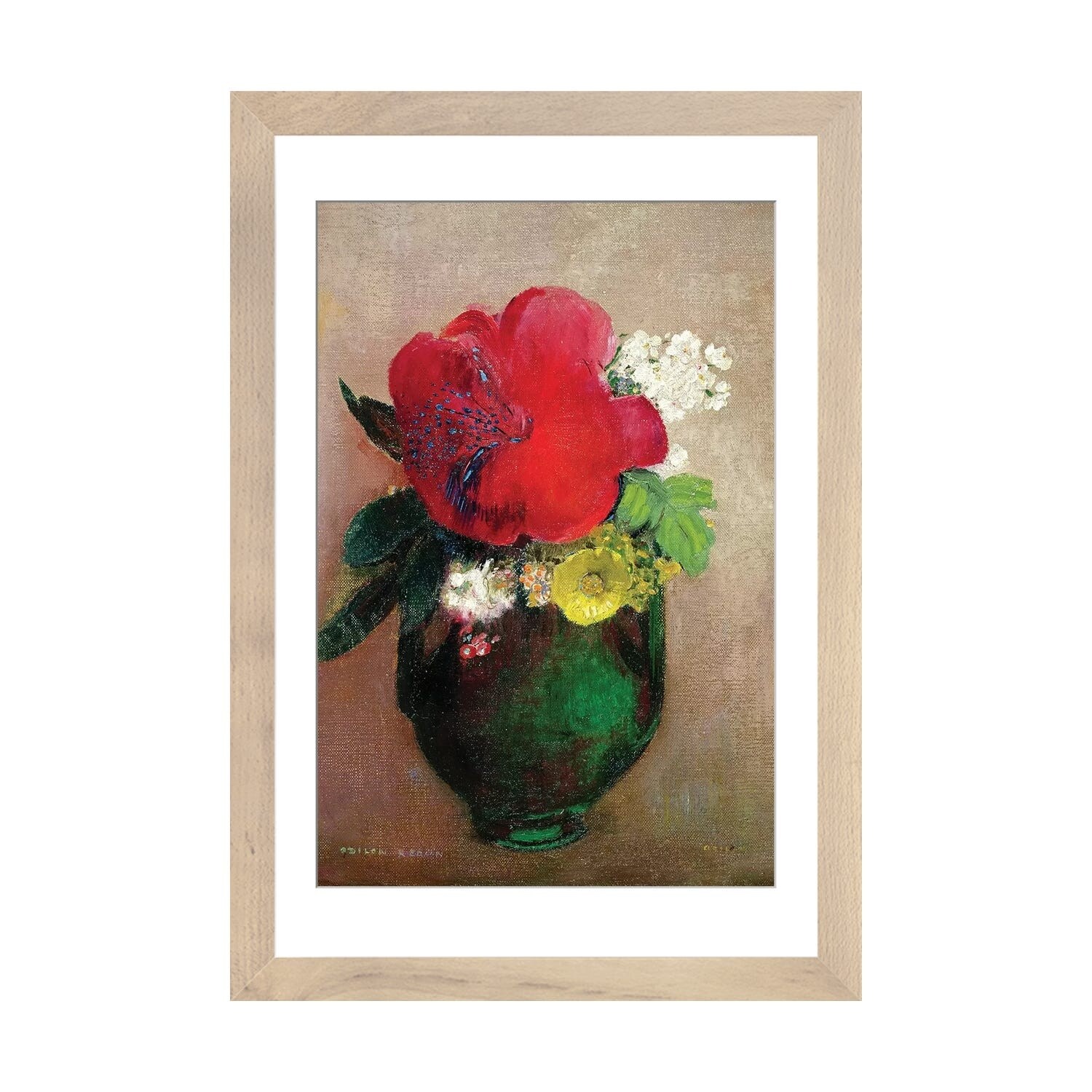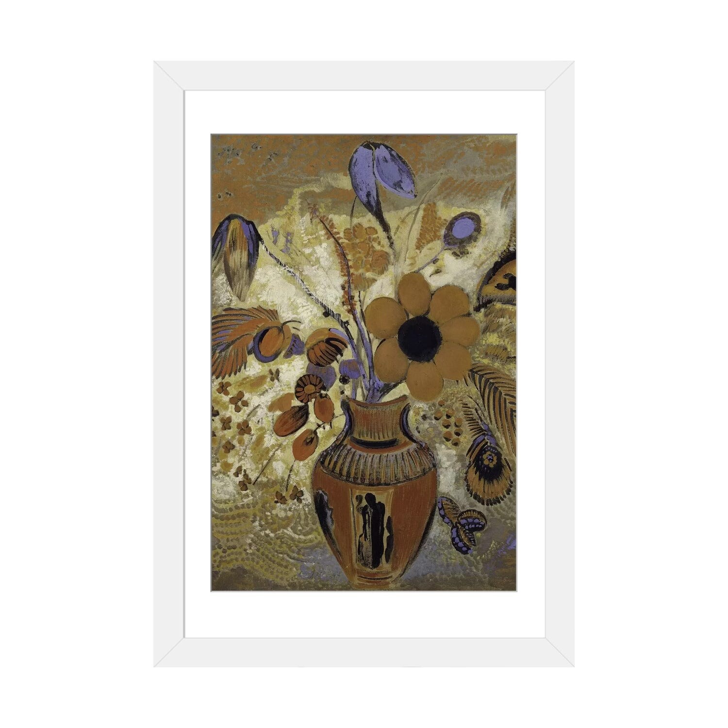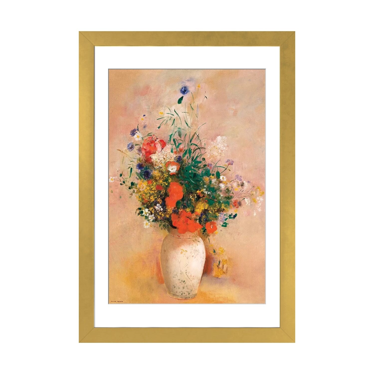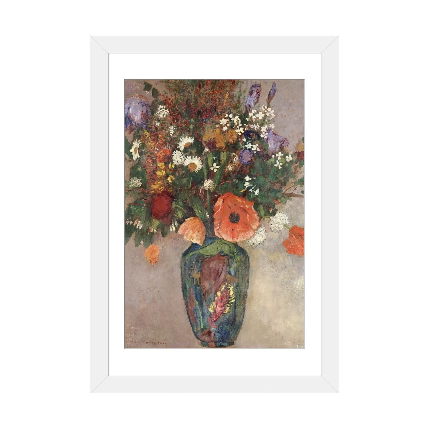 iCanvas "Flowers in a Painted Vase" by Odilon Redon Framed