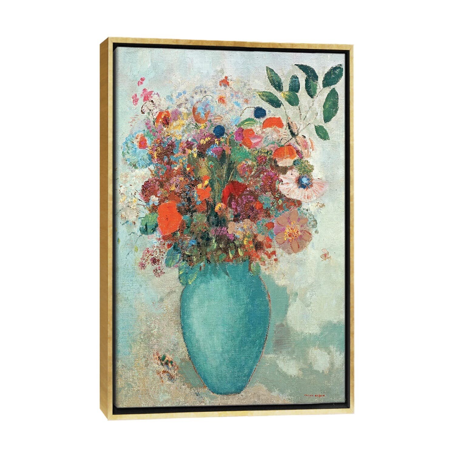 iCanvas "Flowers in a Turquoise Vase, c.1912 " by Odilon Redon Framed Canvas Print