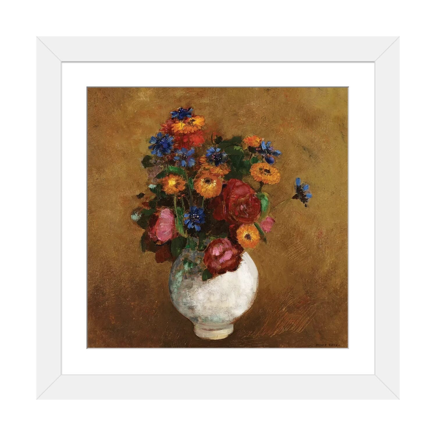 iCanvas "Bouquet of Flowers in a White Vase" by Odilon Redon Framed Canvas Print