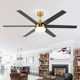 65 Inch Gold Large LED Ceiling Fan with Light and Remote (6-Blade)