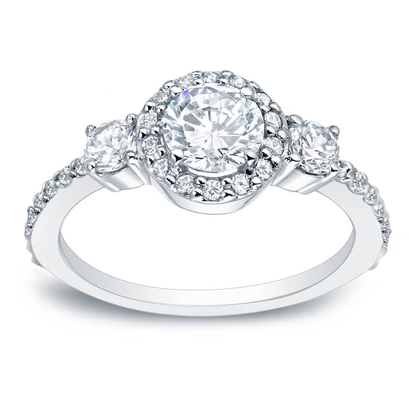 Auriya Platinum 1 1/4ctw Round 3-Stone Halo Diamond Engagement Ring