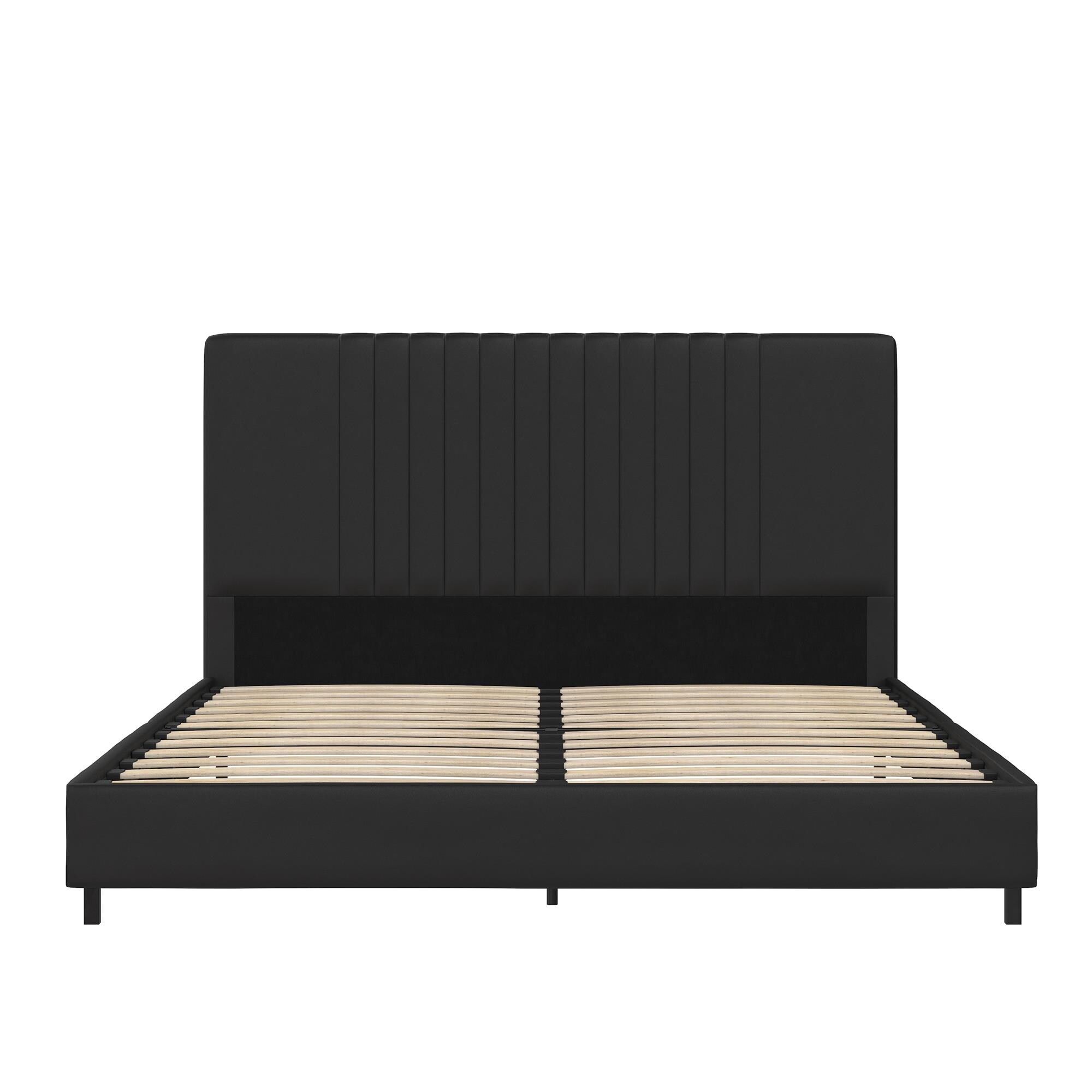 RealRooms Rio Upholstered Platform Bed with Wooden Slats and Vertical Tufted Headboard