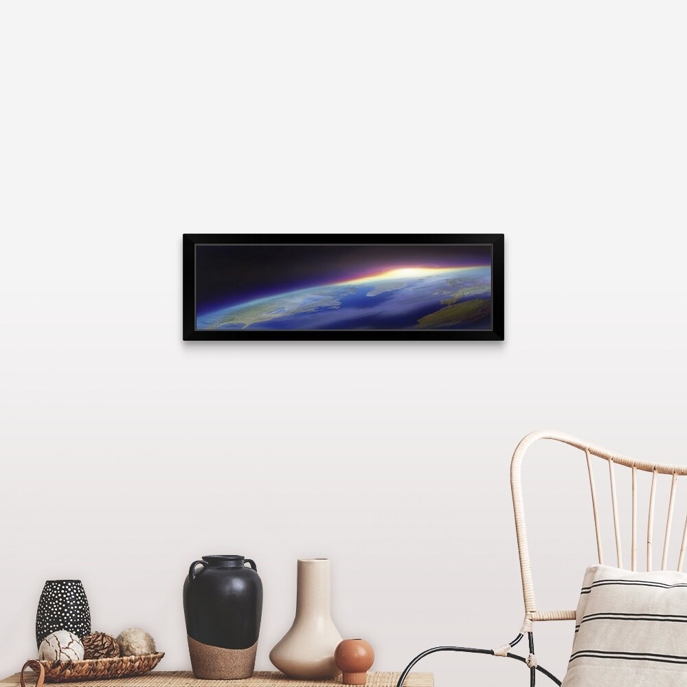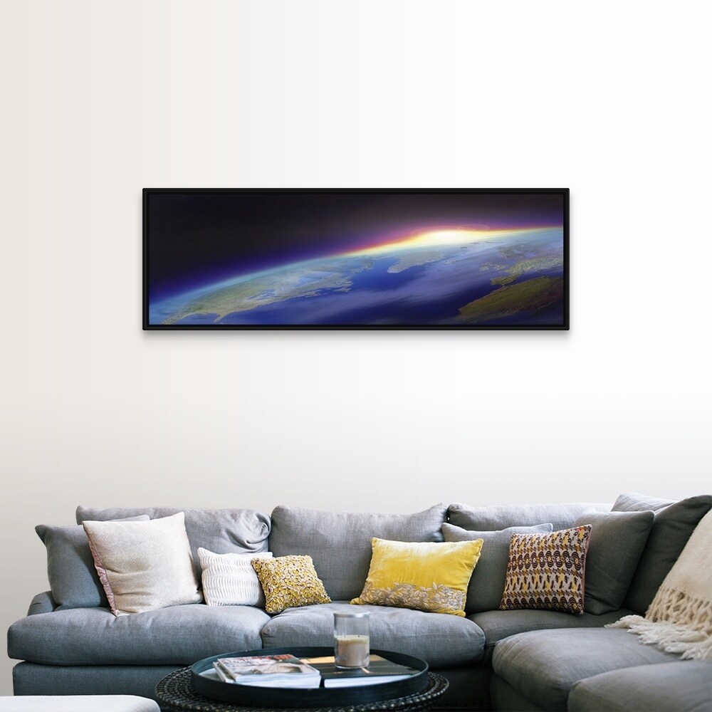 "Sun rising over the earth" Black Float Frame Canvas Art