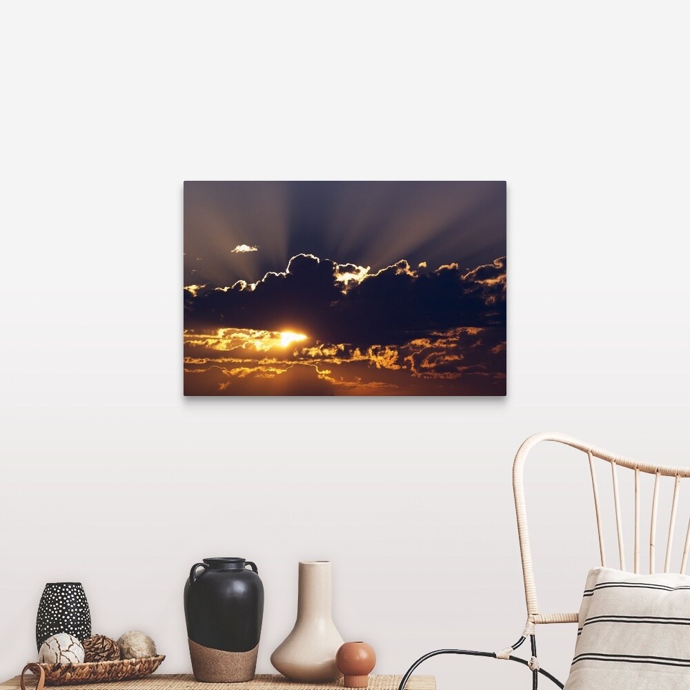 "Sun rising behind dark clouds, Montana" Canvas Wall Art
