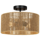 2-Light Bohemian Woven Rope Semi-Flush Mount Ceiling Light - D16"x H8.7" - Brass/Beige - 16 in. W
