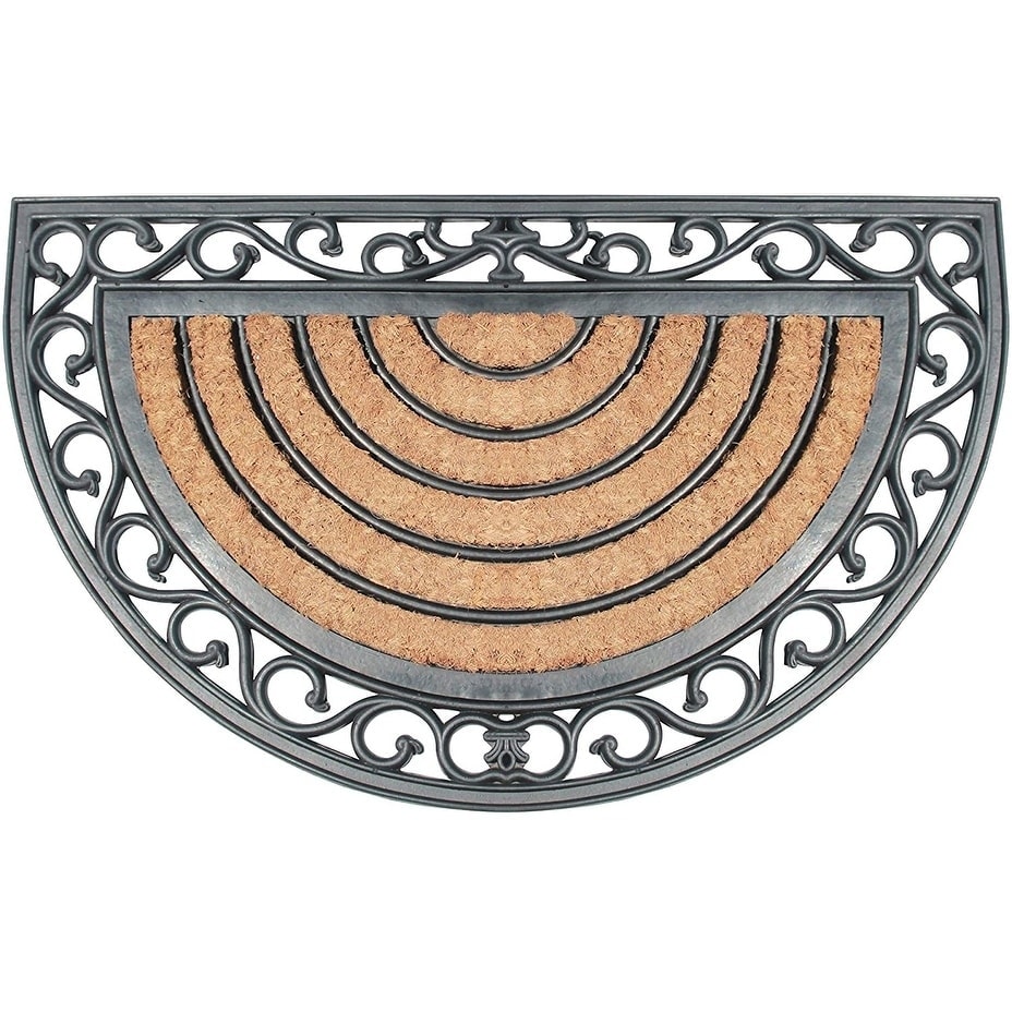 Decorative Black Rubber and Coir Outdoor Half Round Door Mat 29.5" x 17.5"