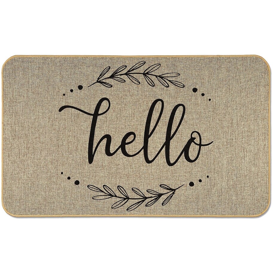 Natural Linen Look Decorative Low Profile Indoor/Outdoor Floor Mat with Recycled Rubber Back, Hello, 29.5" x 17.75".