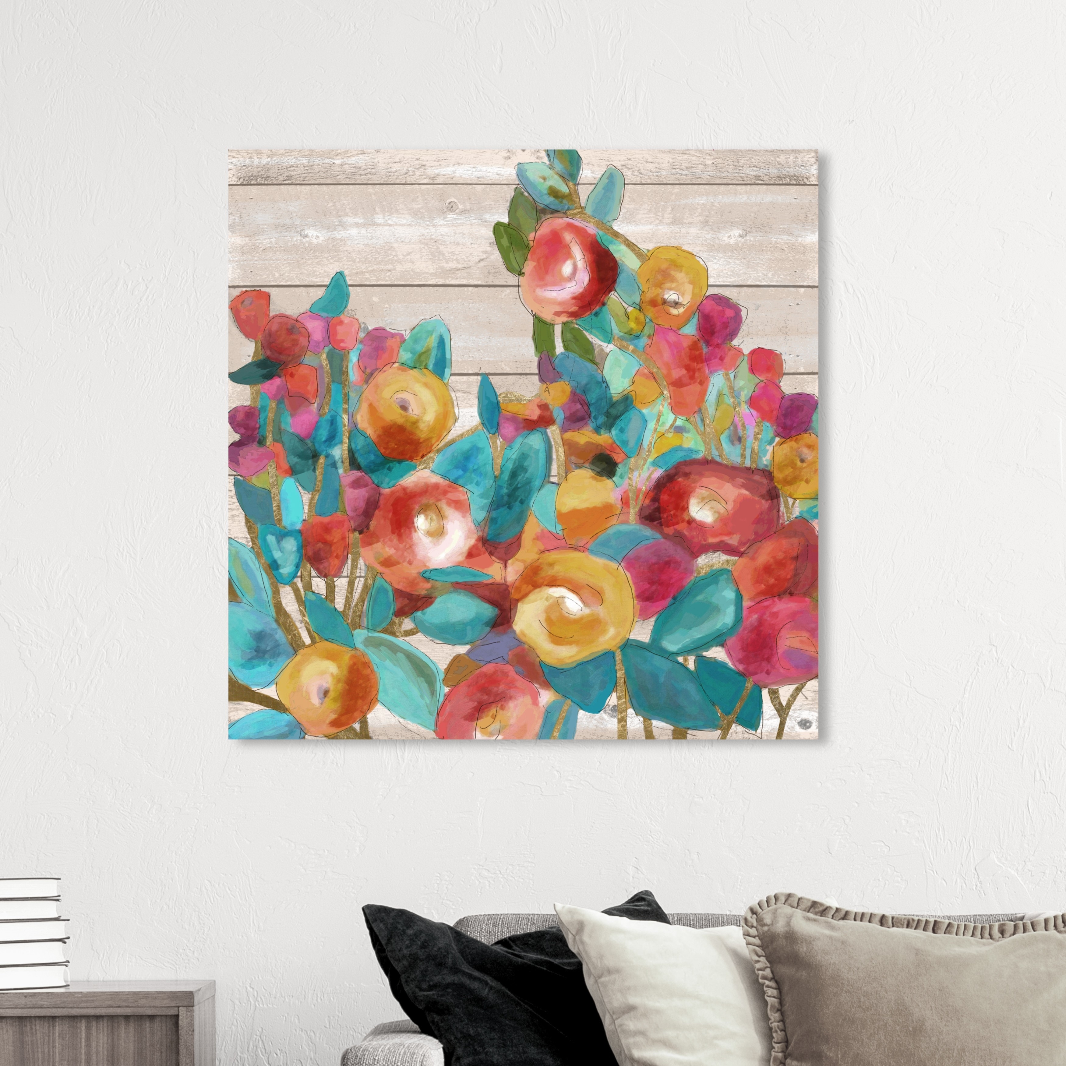Oliver Gal Floral and Botanical Wall Art Canvas Prints 'Golden Florals II' Florals - Red, Yellow