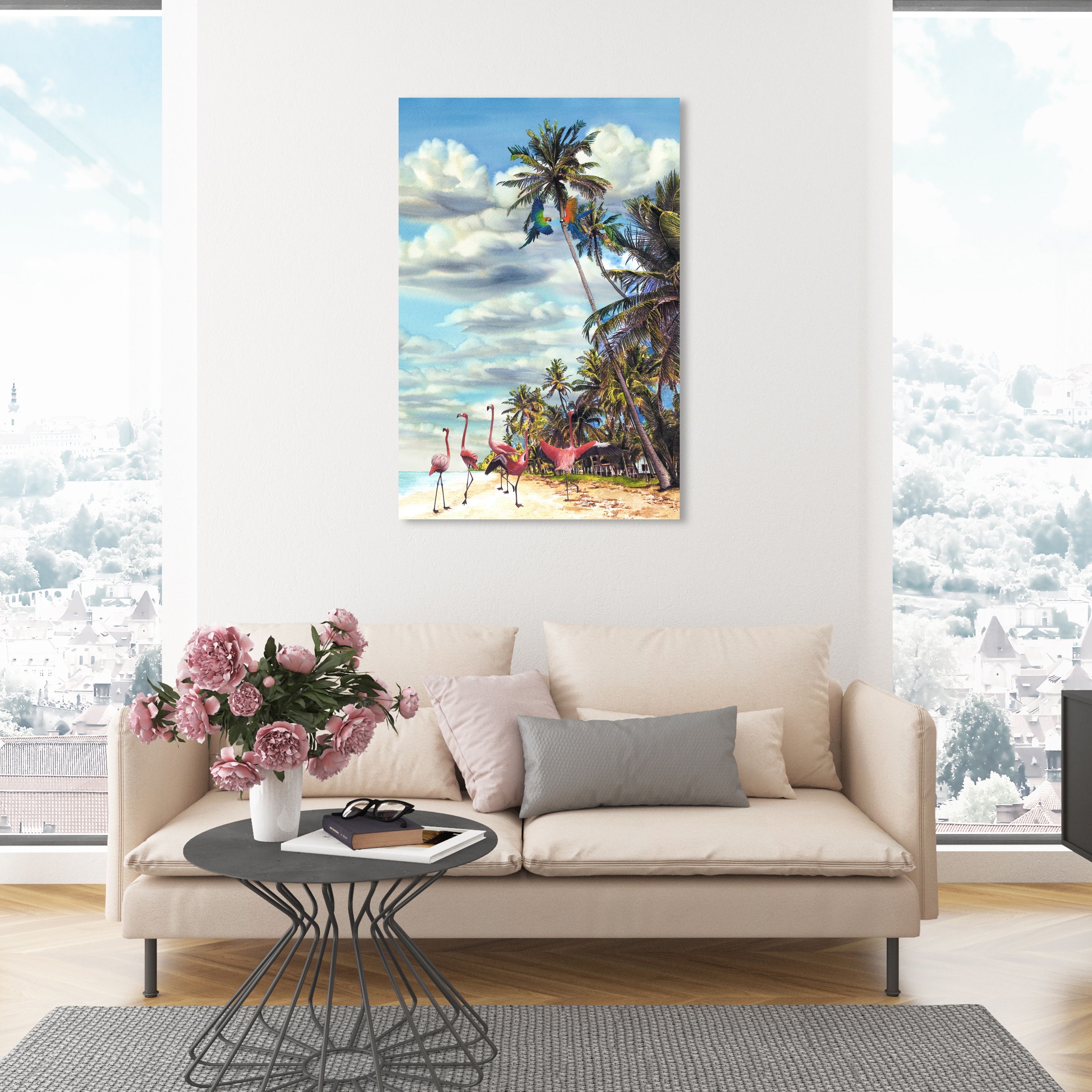 Oliver Gal 'Summer view flamingos' Nature and Landscape Blue Wall Art
