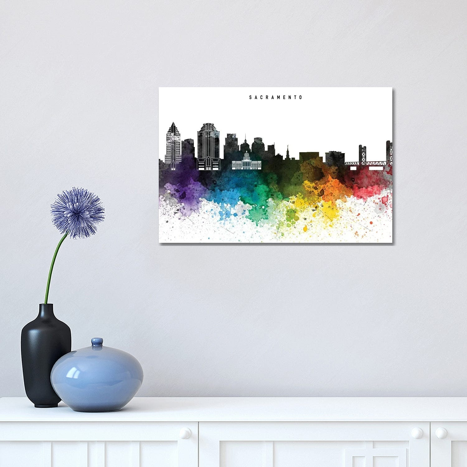 iCanvas "Sacramento Skyline, Rainbow Style" by WallDecorAddict Canvas Print