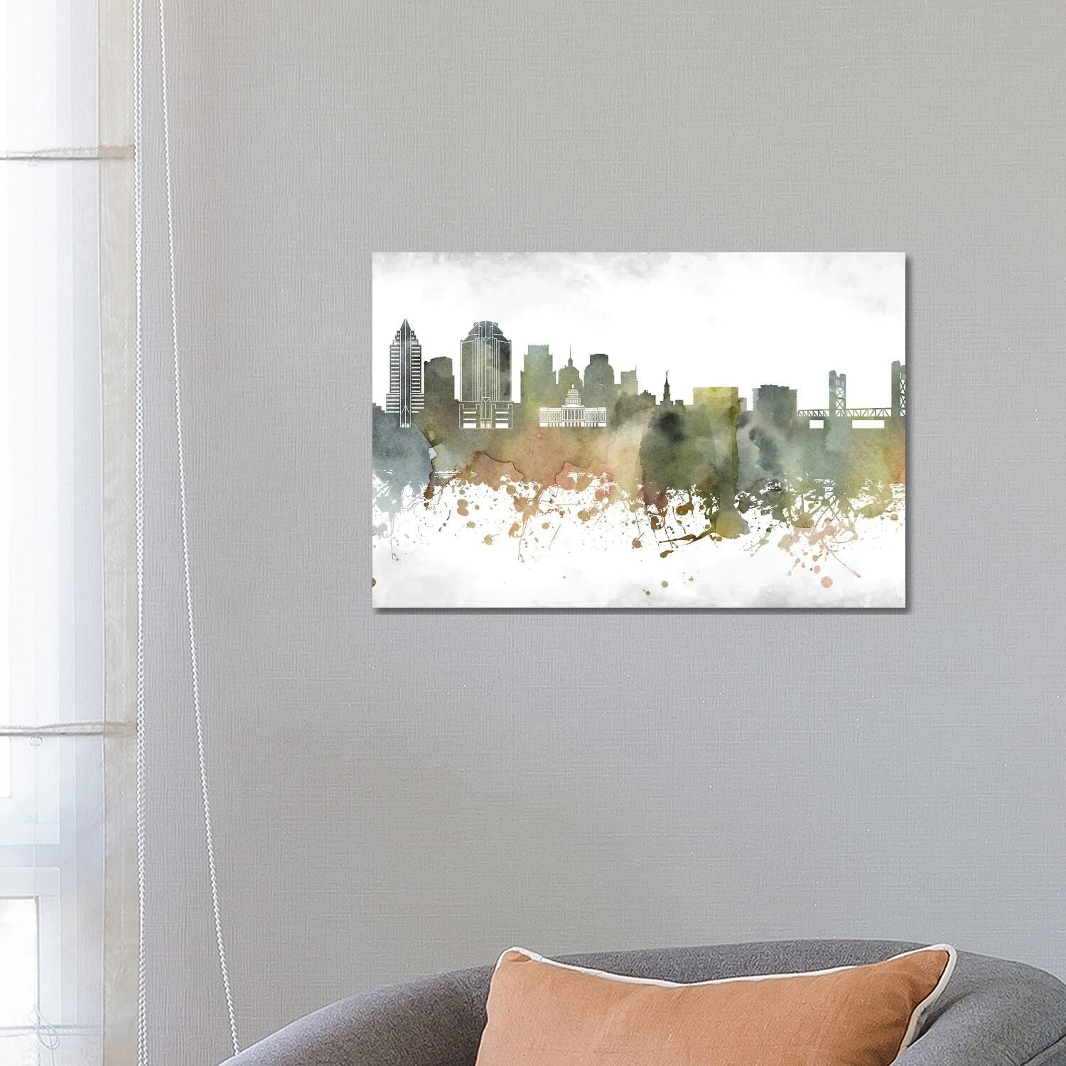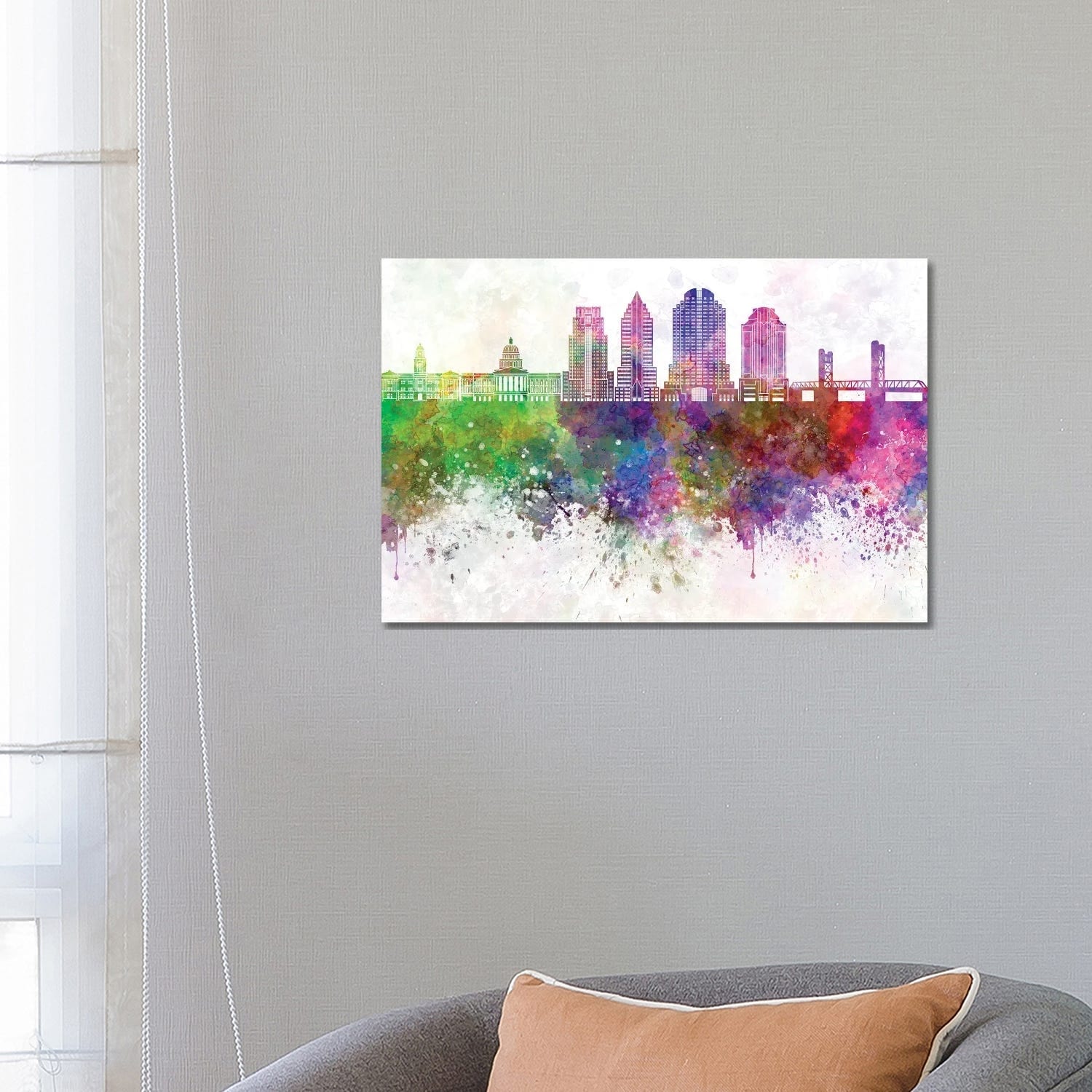 iCanvas "Sacramento II Skyline in Watercolor Background" by Paul Rommer Canvas Print