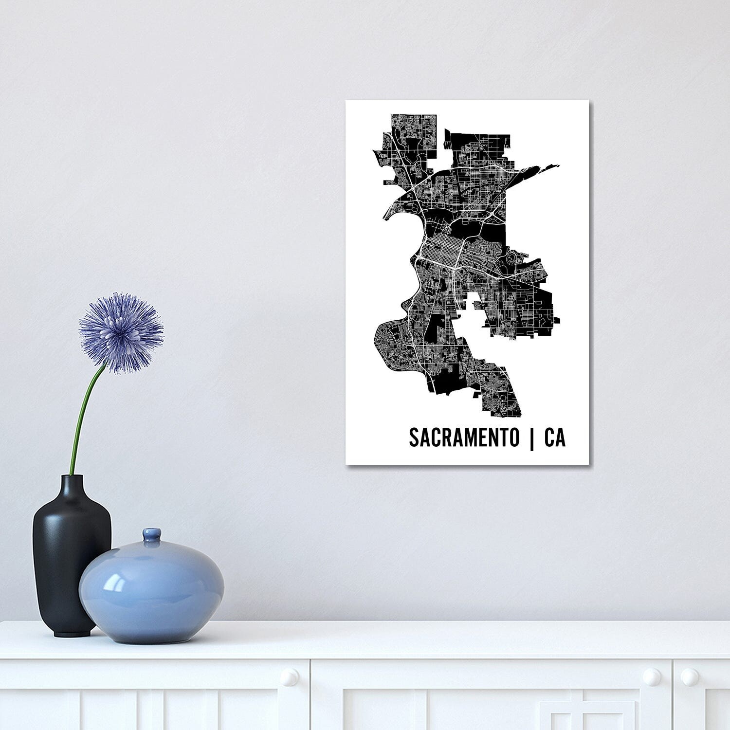 iCanvas "Sacramento City Map Black White Grey Style" by WallDecorAddict Canvas Print
