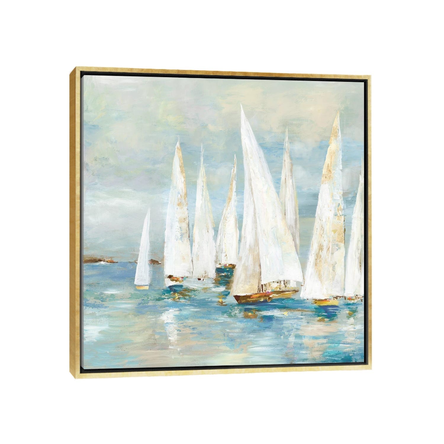 iCanvas "White Sailboats" by Allison Pearce Framed