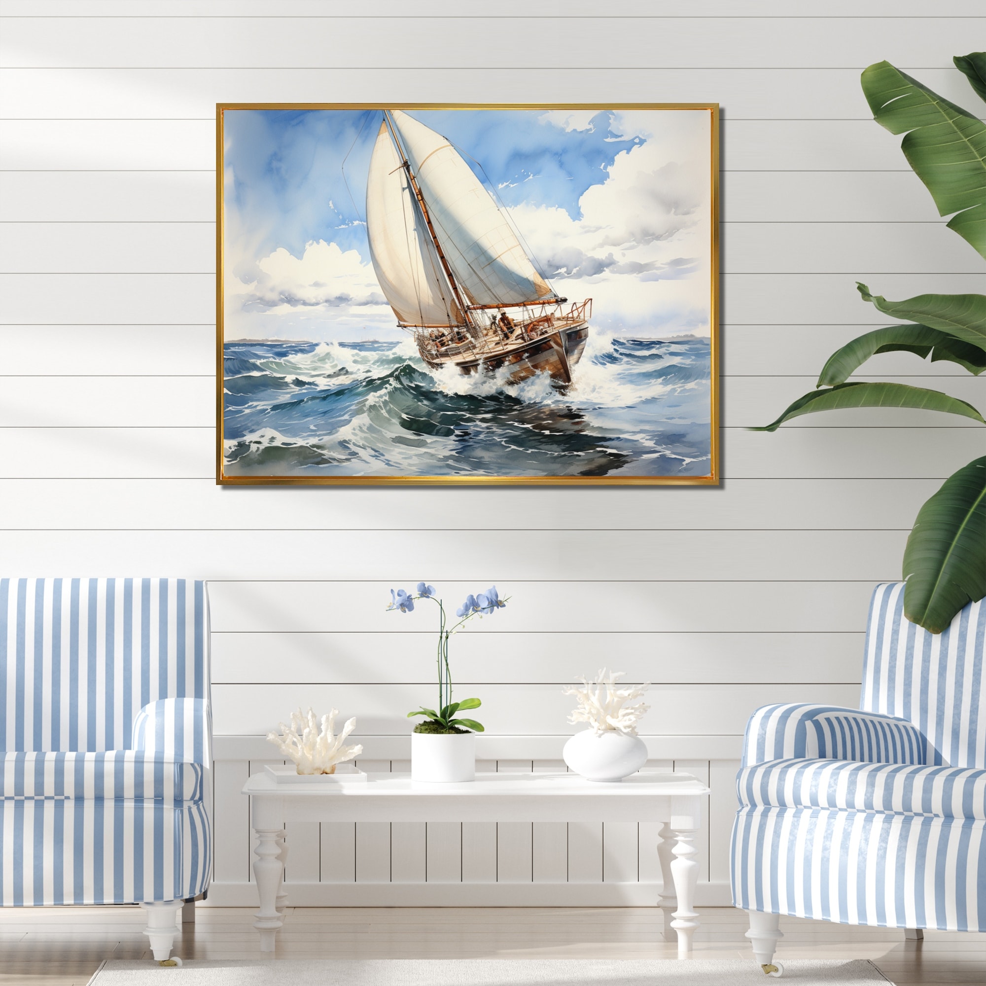 Designart "Classic Sailboat Wave" Nautical & Coastal Framed Art Print