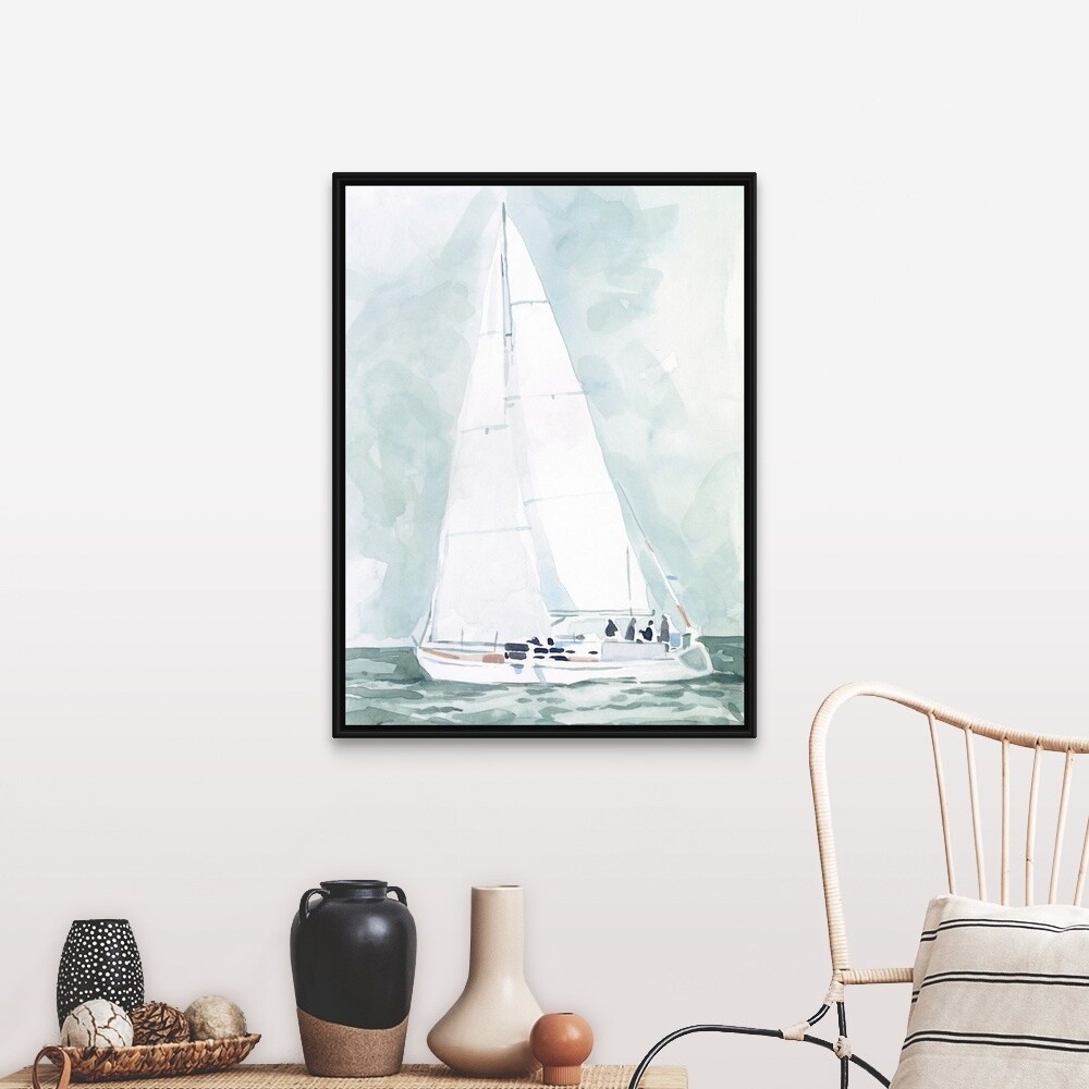 "Soft Sailboat IV" Black Float Frame Canvas Art