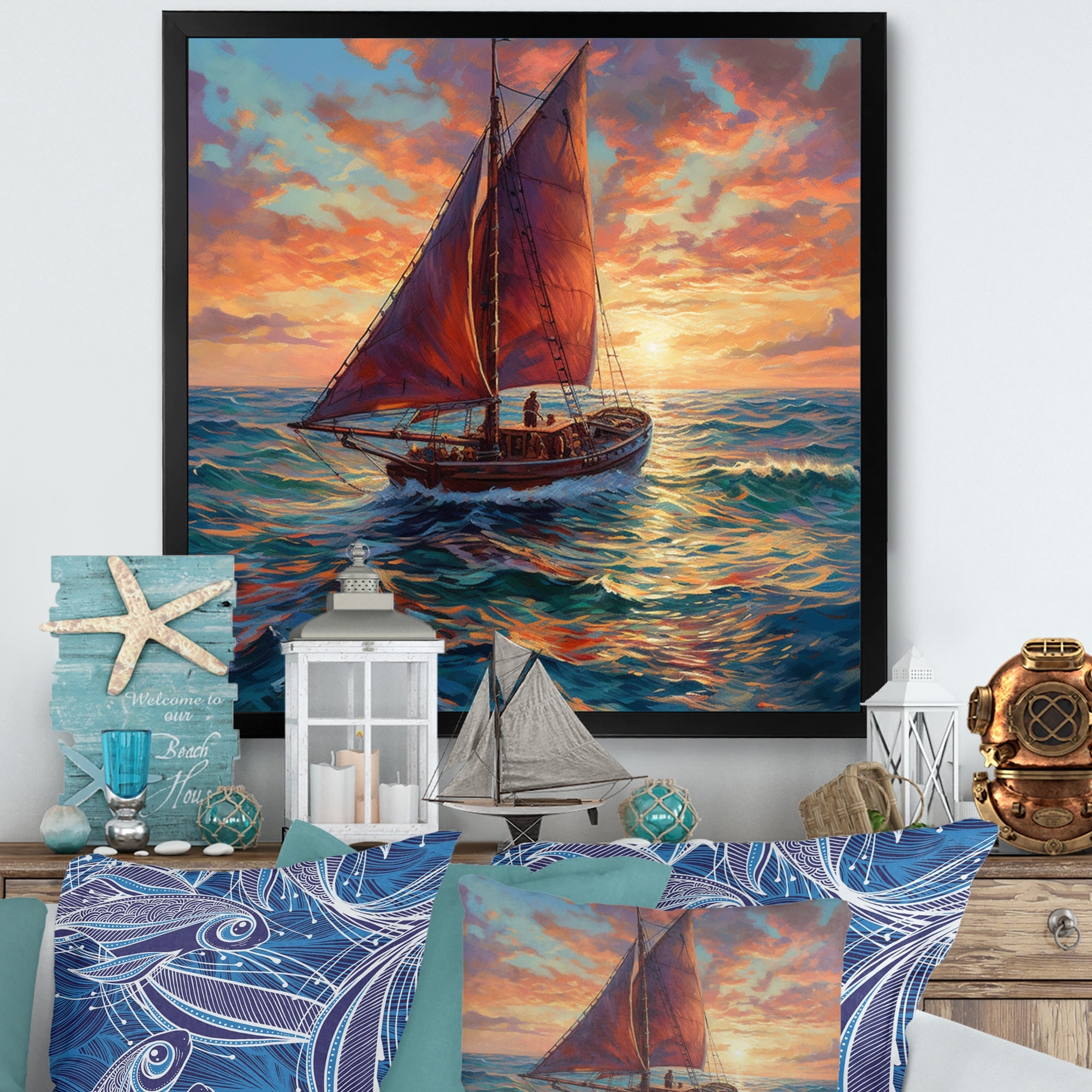 Designart "Sailboat During Exotic Sunset III" Coastal Boat Framed Art Print