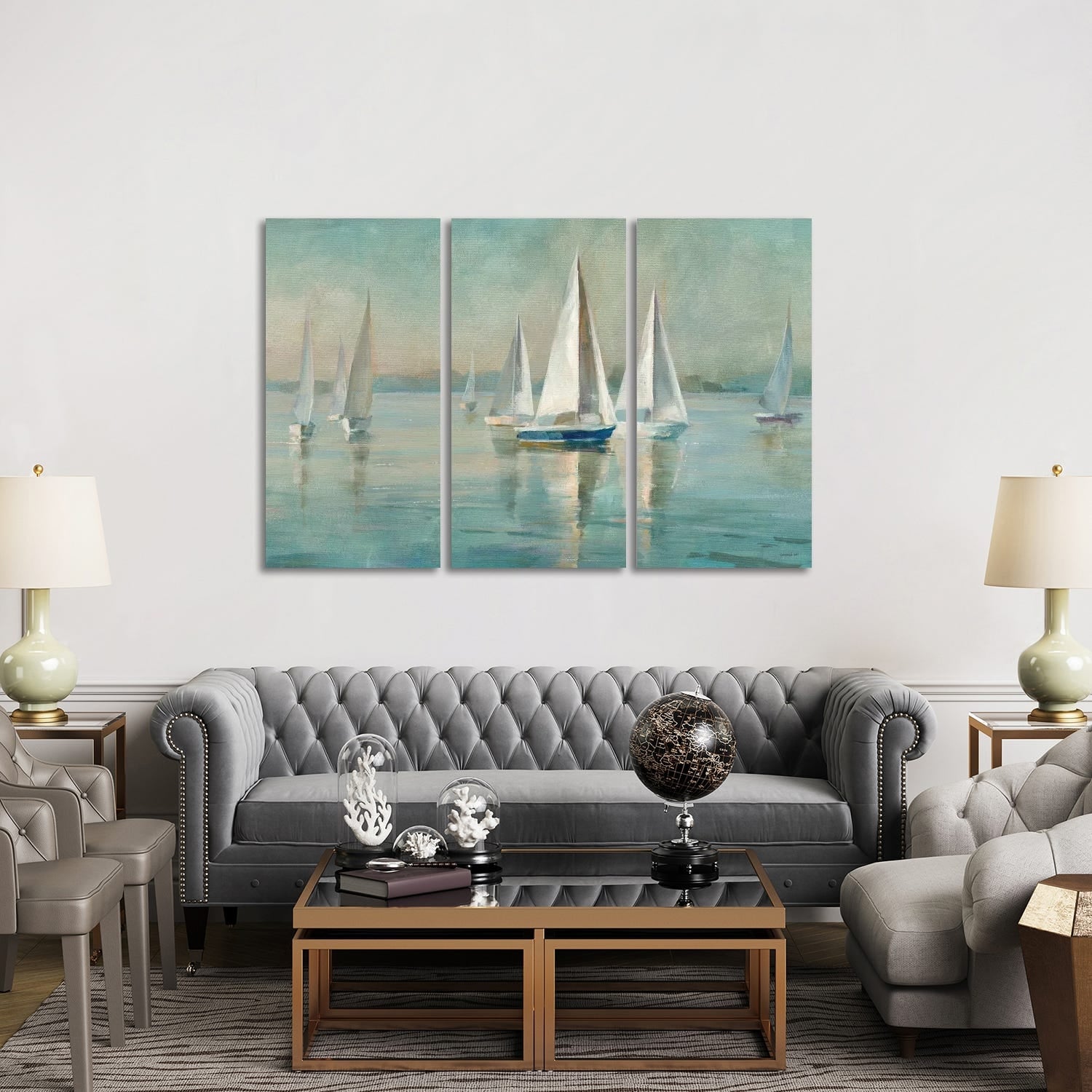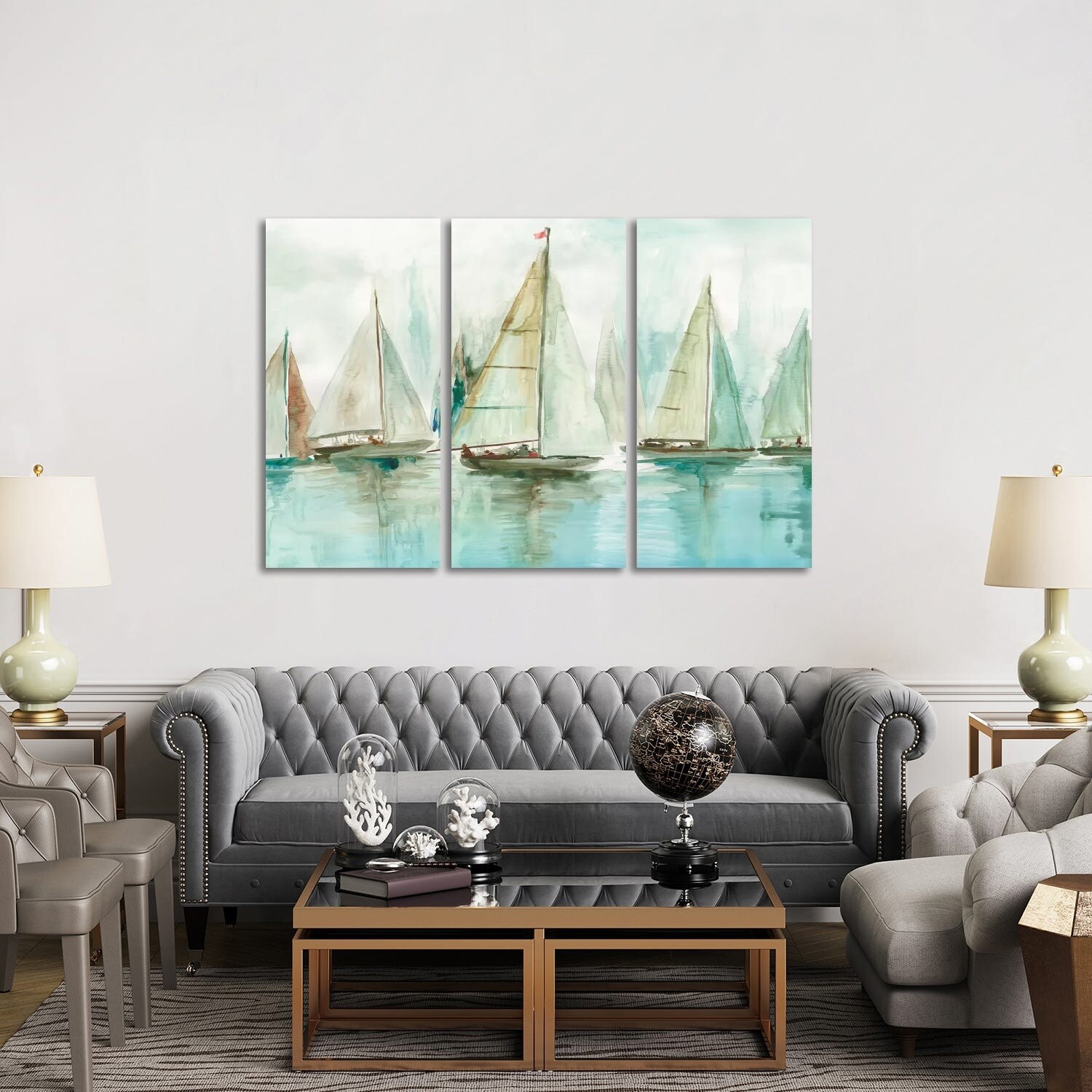 iCanvas "Blue Sailboats I " by Allison Pearce 3-Piece Canvas Wall Art Set