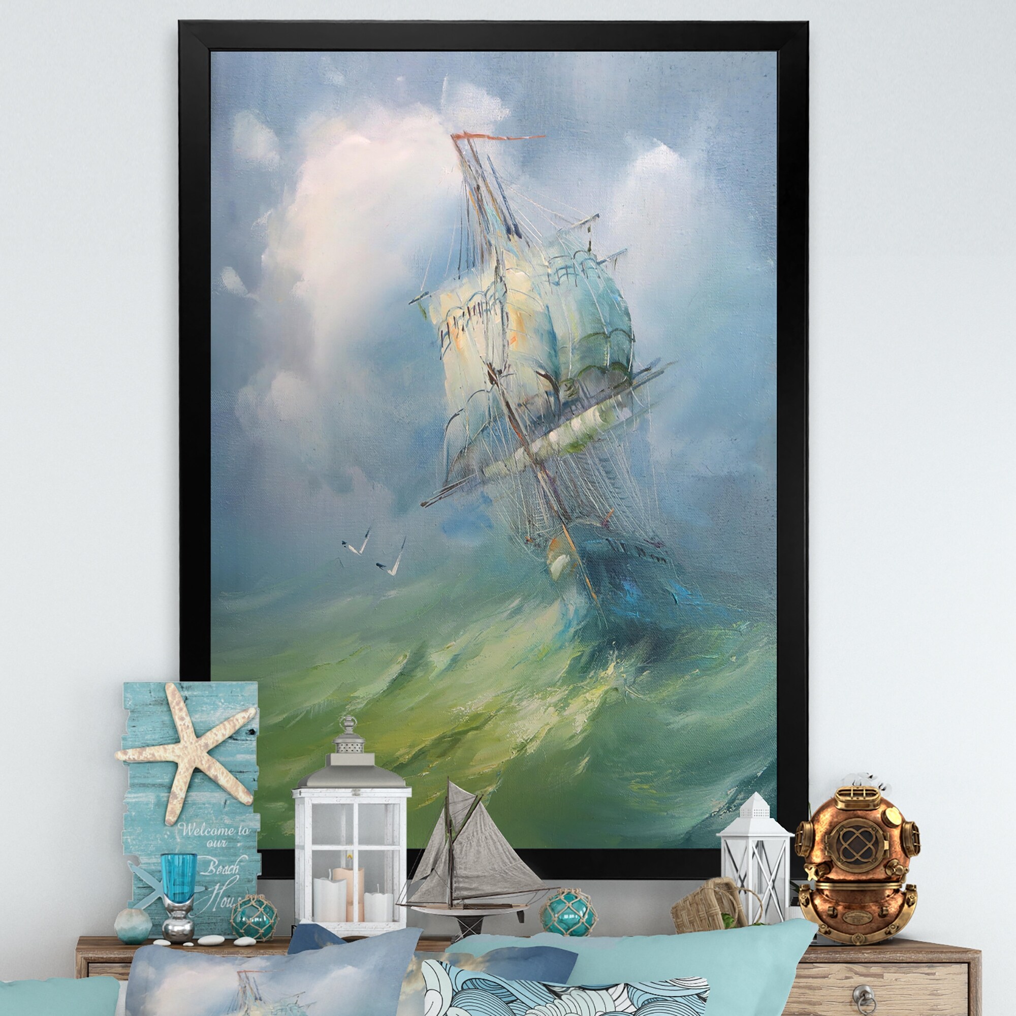 Designart "Sailboat In Storm" Nautical & Coastal Framed Wall Decor