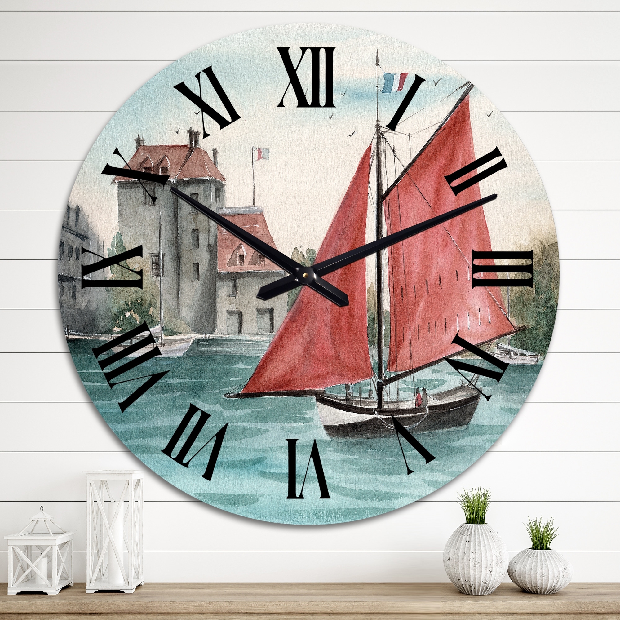 Designart 'Landscape Of City Embankment With A Sailboat' Nautical & Coastal wall clock